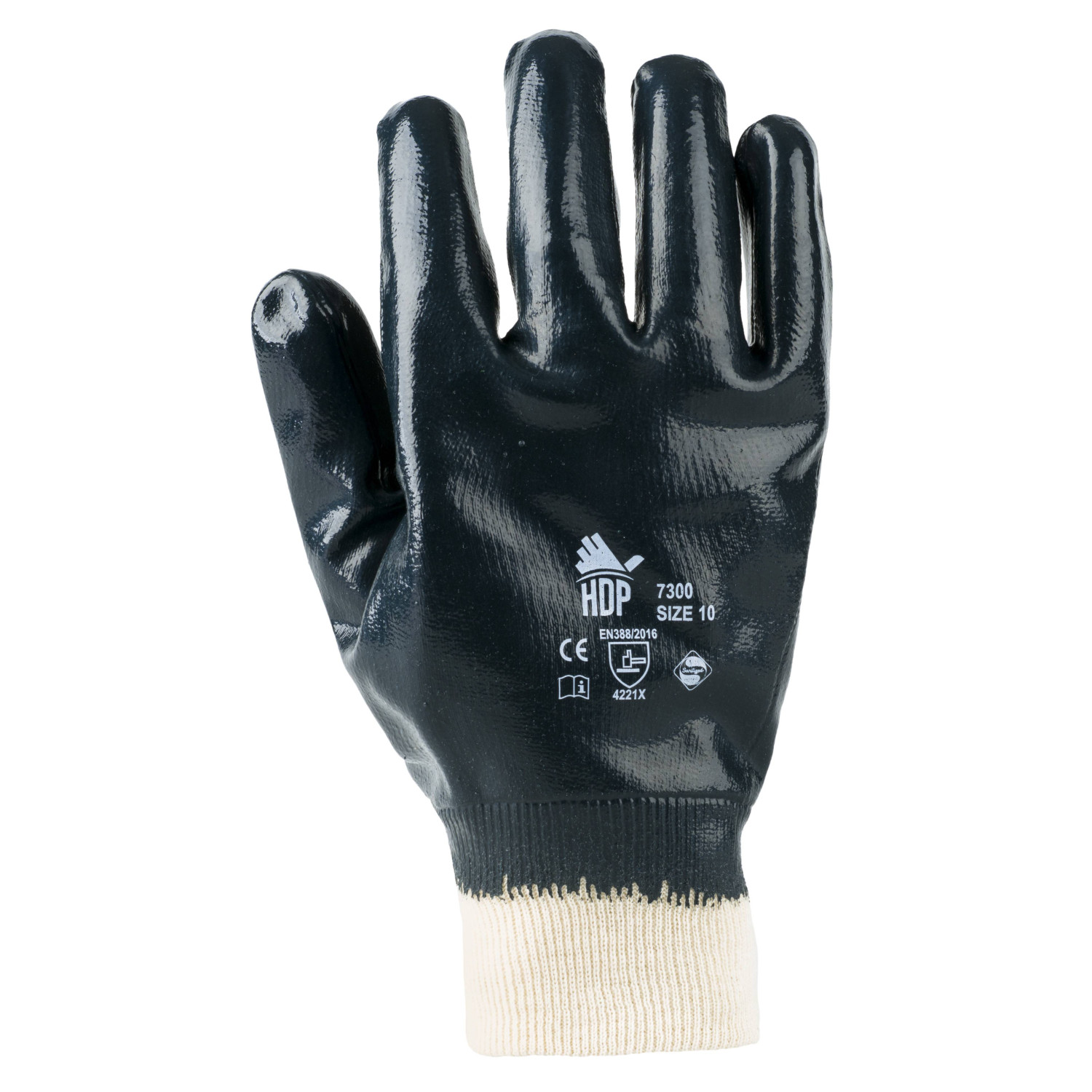 DPI 2a categoria materiale: NBR TOP QUALITY supporto: JERSEY DI COTONE colore: blu taglie: 8 - 9 - 10 - 11 - polso maglia - interamente ricoperto ** SANITIZED ** EN 388 cartone da 120 paia (10 x 12 paia)