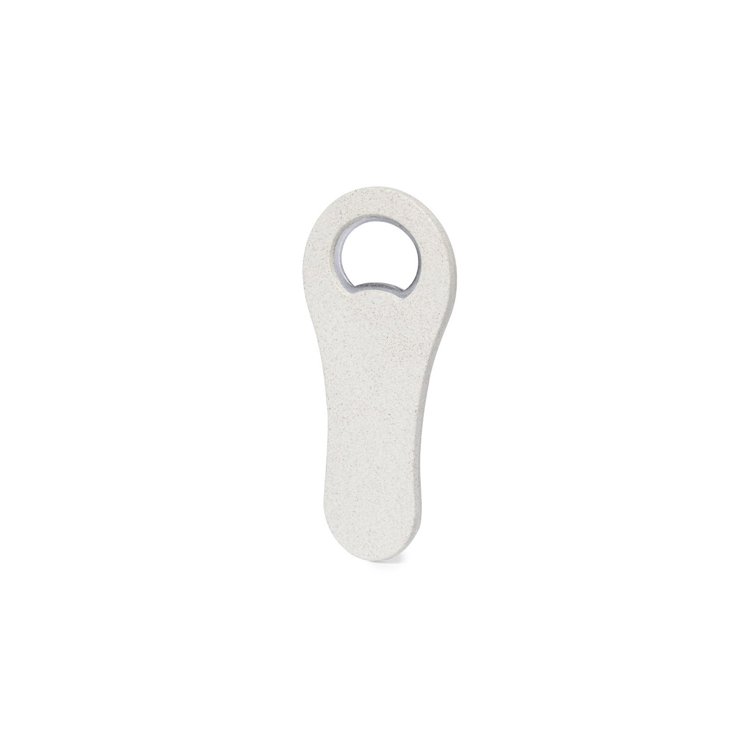 Apribottiglie realizzato in fibra da grano. È dotato di una calamita che permette di attaccarlo a qualsiasi superficie metallica. Presentato singolarmente in un sacchetto di carta riciclata.