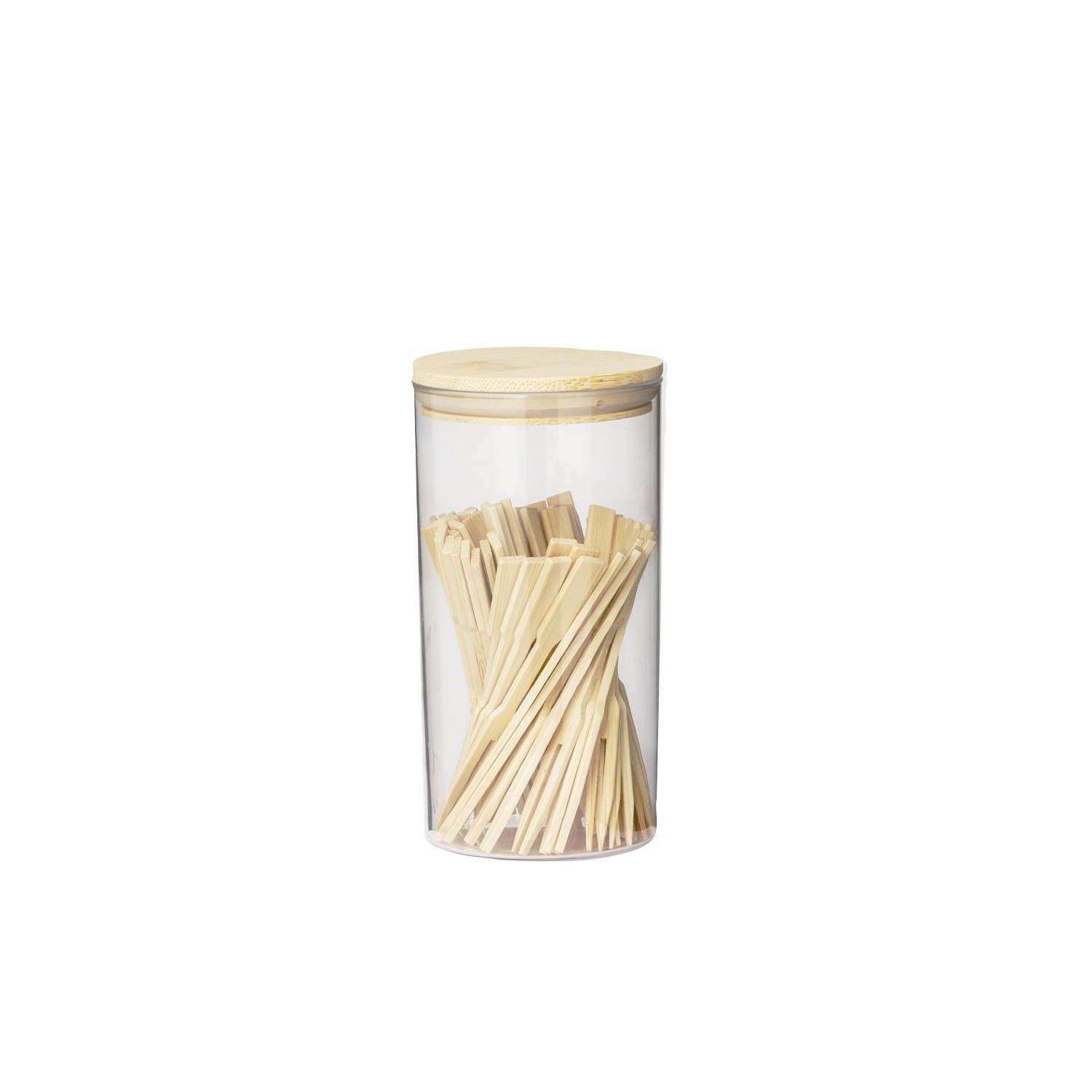 Set di bacchette in bambù. Composto da 50 pezzi presentati in un elegante barattolo trasparente con coperchio a scatto in bambù. Presentato in una scatola kraft individuale. Materiali come il bambù favoriscono l'utilizzo di materie prime naturali, riducendo le emissioni inquinanti. Proviene da una pianta altamente resistente e versatile, con una rapida crescita e rigenerazione, rappresentando un'ottima alternativa all'uso del legno tradizionale.