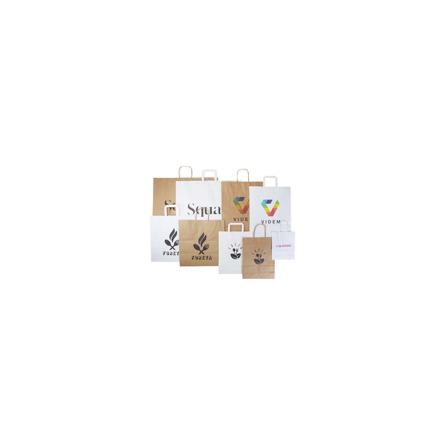 - Per ogni formato è disponibile 1 sacchetto con manici piatti e 1 sacchetto con manici intrecciati, ad eccezione del formato più piccolo che è disponibile solo con manici intrecciati