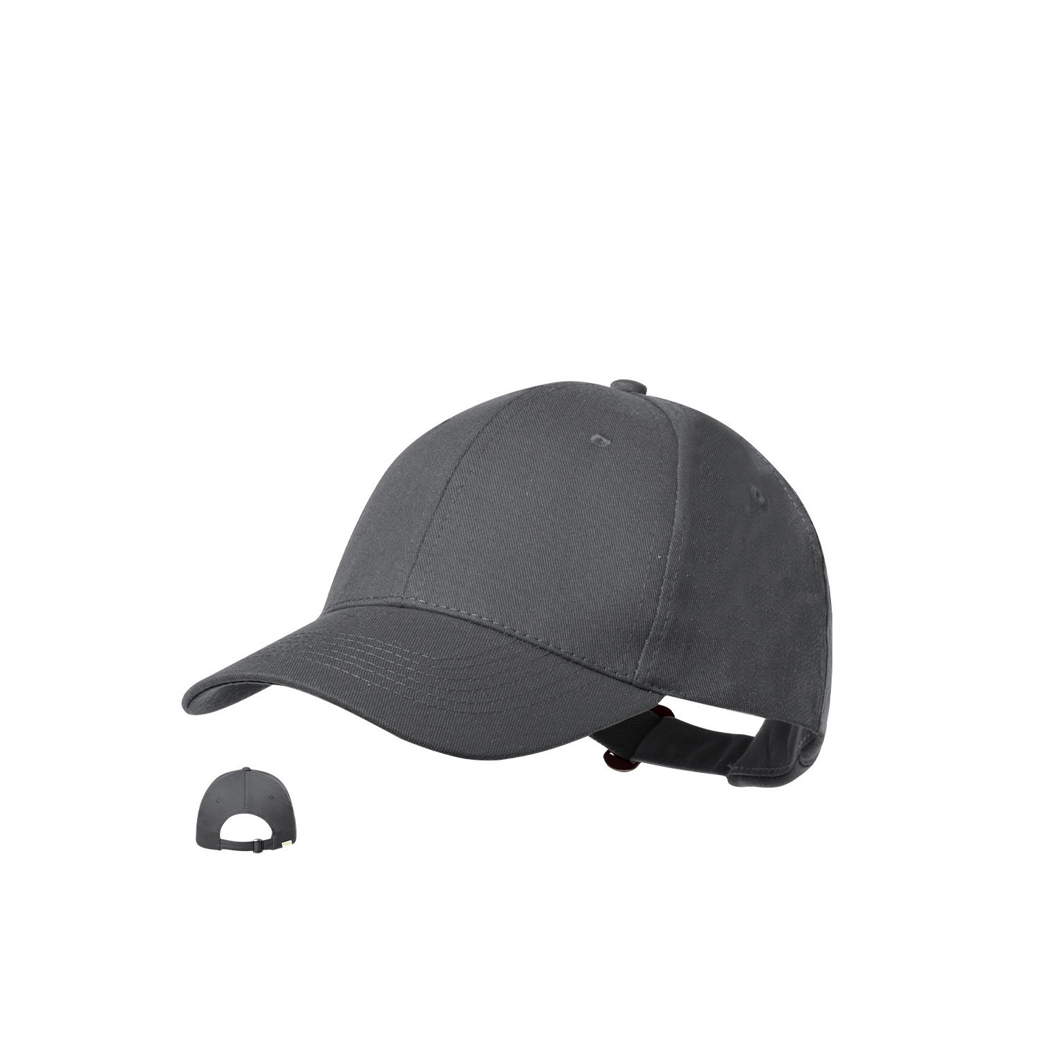 Cappellino a 6 pannelli in cotone riciclato con finitura morbida. Chiusura con fibbia regolabile e fori di ventilazione ricamati. Disponibile in un'ampia gamma di colori, con logo sull'etichetta.