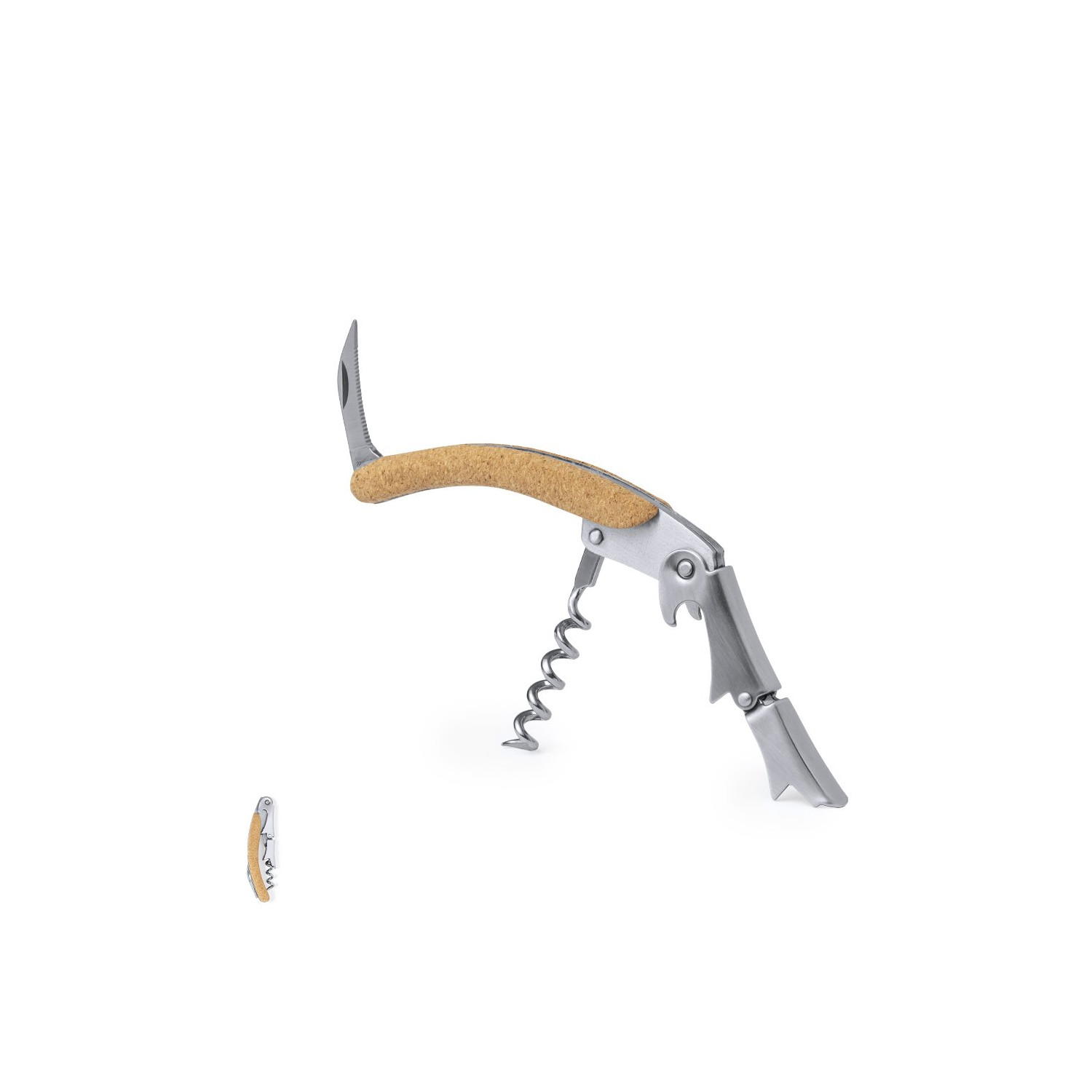 Cavatappi a 2 tempi in acciaio inossidabile, con manico in sughero naturale e cavatappi integrato. Presentato in una scatola singola dal desing kraft.