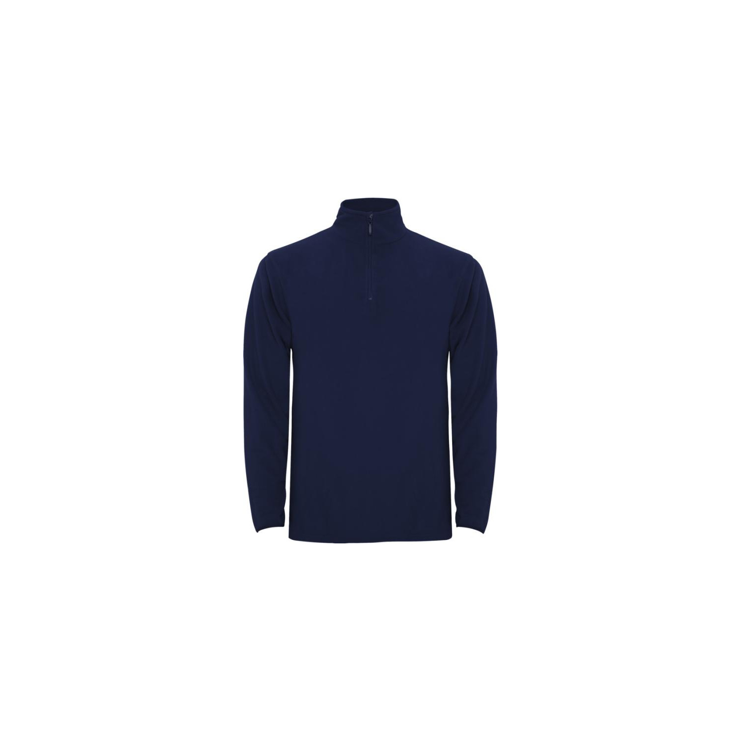 Micropile con mezza cerniera sul colletto e protezione per il mento. Polsini con elastico abbinato. Etichetta rimovibile. Il modello è alto 190 cm ed indossa una taglia L.