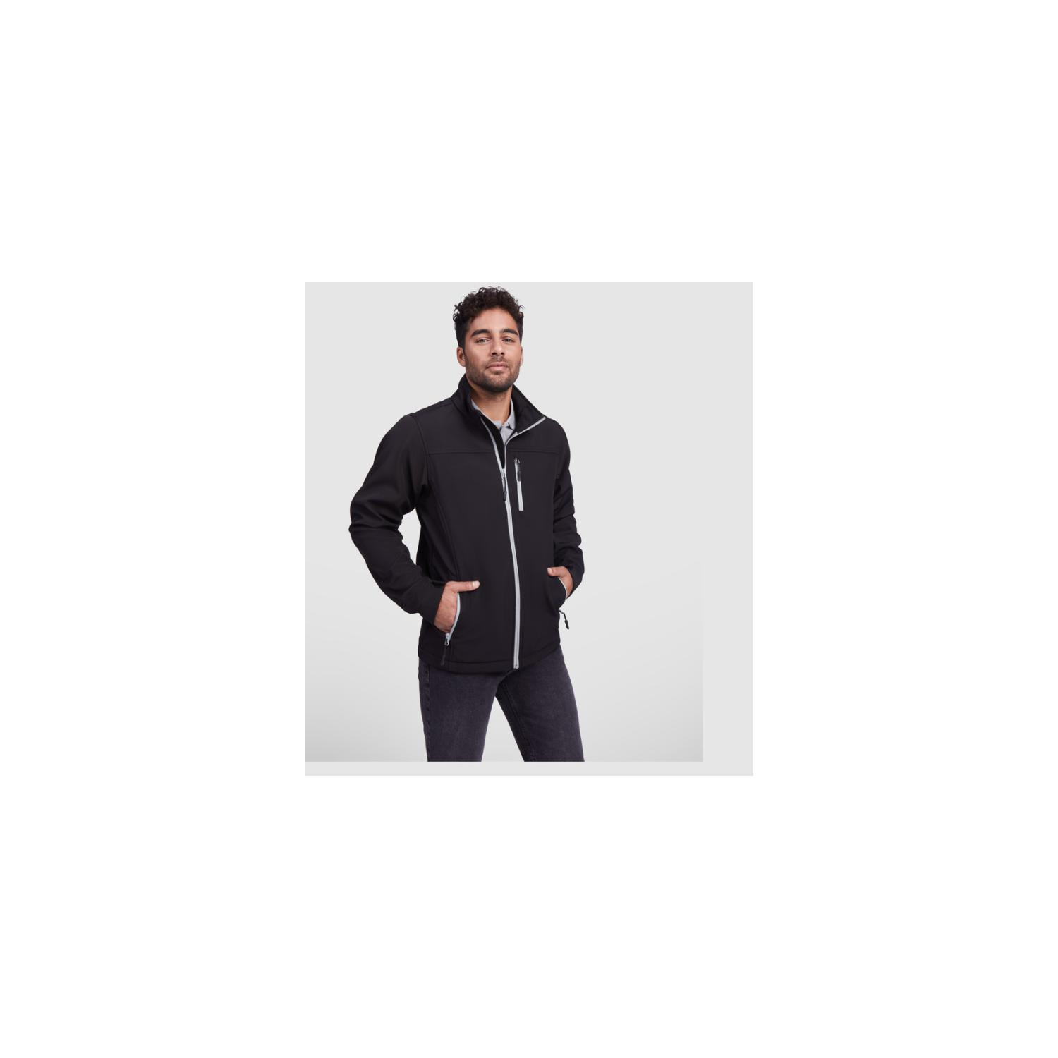 Softshell a doppio strato. Cerniera invertita, effetto sigillato, con protezione per il mento e tiretto abbinato. Dettaglio a forma di taglio sul petto. Tre tasche esterne con cerniera e tiretto abbinato. Chiusure in velcro sui polsi. Orlo inferiore regolabile con cordoncino regolabile e fermi. Impermeabilità di 1.000 mm. Il modello è alto 185 cm ed indossa una taglia M.
