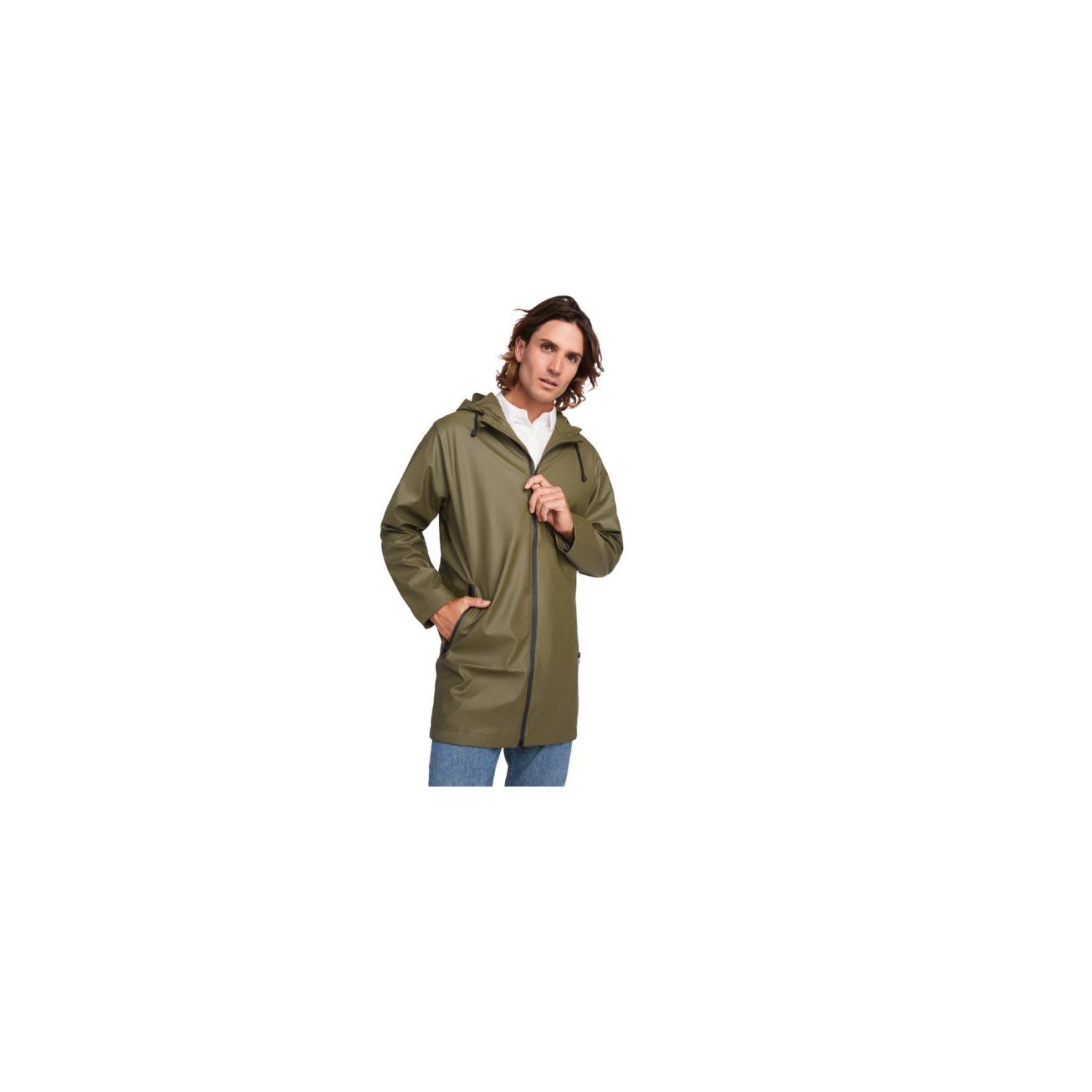 Giacca impermeabile. Cappuccio con visiera. Cerniere e cuciture termosaldate. Dettagli a contrasto di colore nero. Due tasche laterali con cerniera. Fessure sul retro del cappuccio. Etichetta rimovibile. Impermeabile. Il modello è alto 185 cm ed indossa una taglia M.