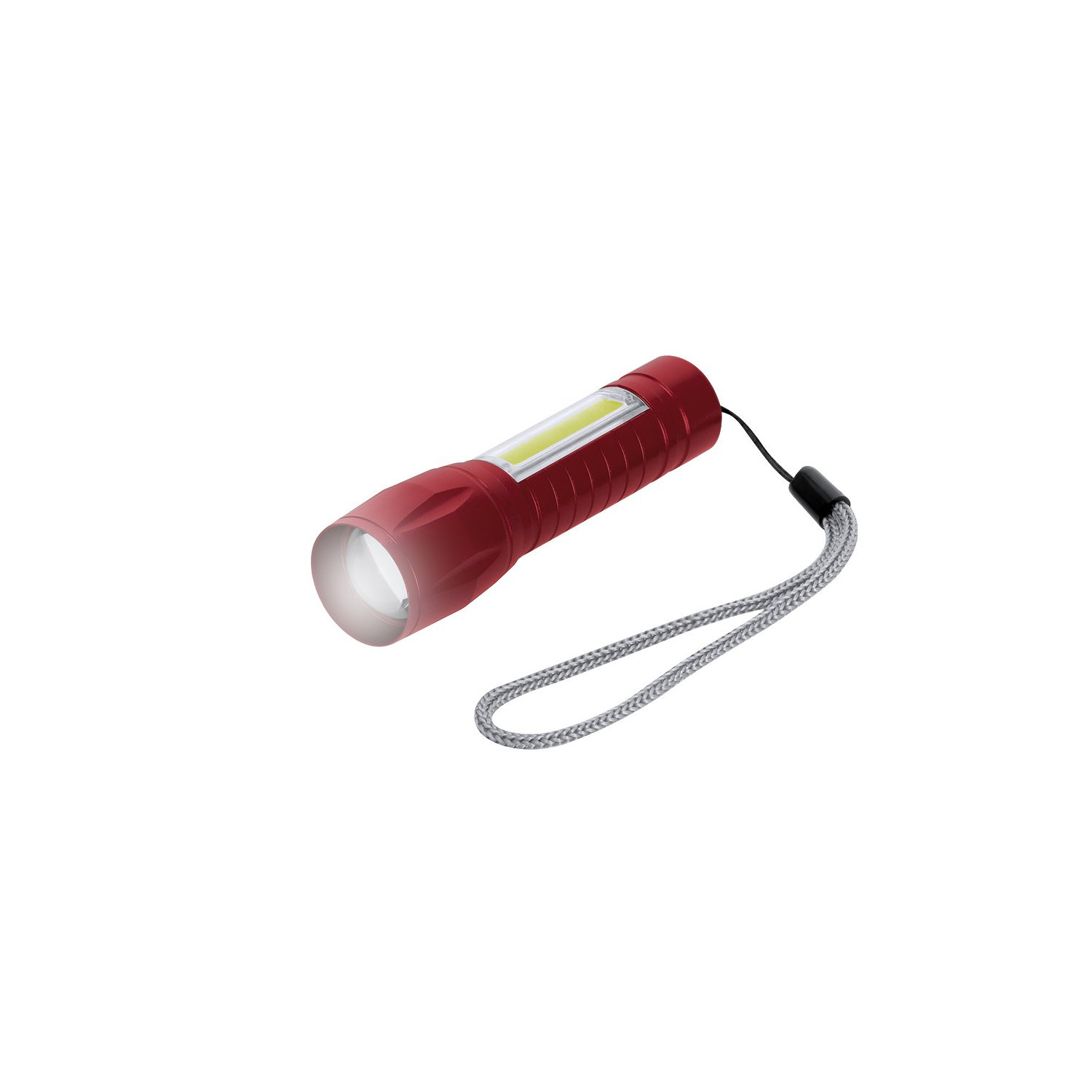 Torcia potente con batteria ricaricabile, realizzata in alluminio opaco. Luce frontale con 8 LED e zoom regolabile. Inoltre, dispone di 10 luci COB sulla maniglia e tre modalità di illuminazione (fissa, lampeggiante e laterale), inclusa la cintura di trasporto. È alimentata da una batteria ricaricabile da 400 mAh, incluso il cavo Type-C.