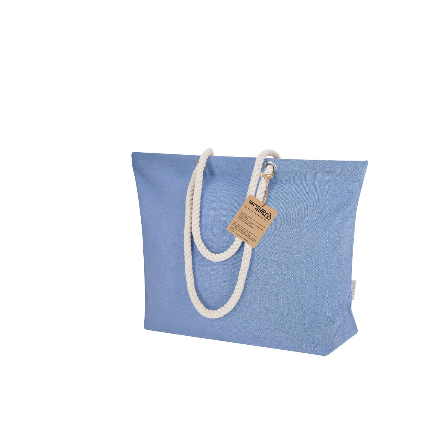 Borsa realizzata principalmente in Cotone Riciclato di 220g/m2. Con fondo e manici lunghi in cotone di colore naturale e design intrecciato. Include distintivo cotone riciclato.