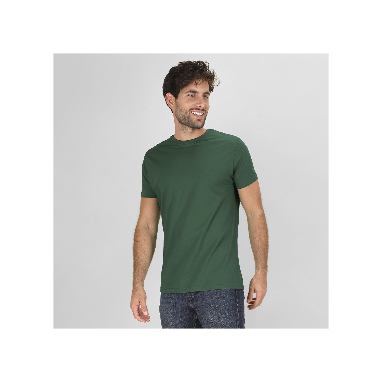 T-shirt tubolare a manica corta unisex realizzata in cotone a maglia liscia di 190 g/m2. Con colletto rotondo in costina 1x1 con elastan e coprisutri.