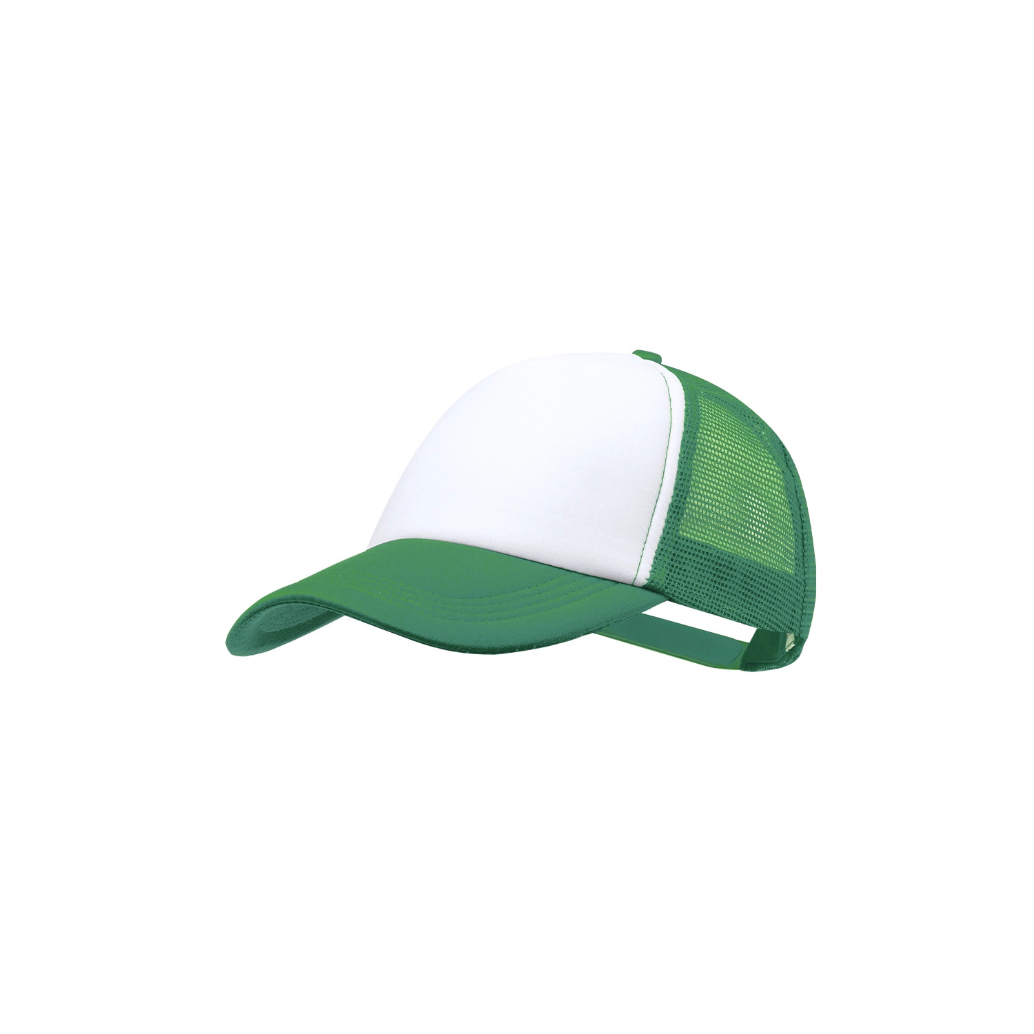 Cappello modello trucker a 5 pannelli in materiale 100% poliestere con finitura liscia. In una ampia gamma di colori vivaci, con pannello frontale bianco e chiusura regolabile in plastica.