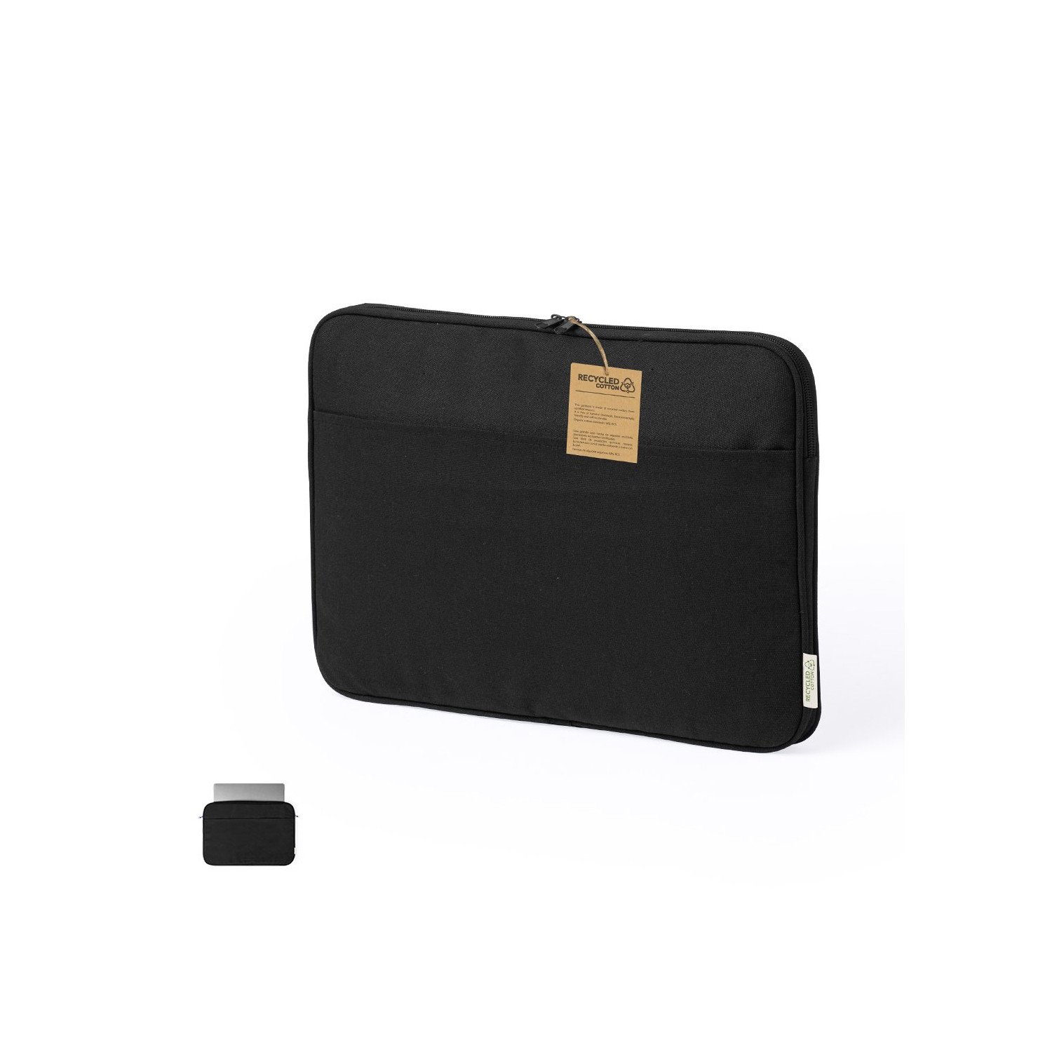 Utile custodia per laptop in cotone riciclato. Scomparto principale imbottito fino a 14" in cotone riciclato al, con targhetta identificativa. Disponibile in colori eleganti e presentata in una borsa individuale riciclata. Realizzata con elementi di origine vegetale per incoraggiare l'uso di materie prime naturali e ridurre le emissioni inquinanti.