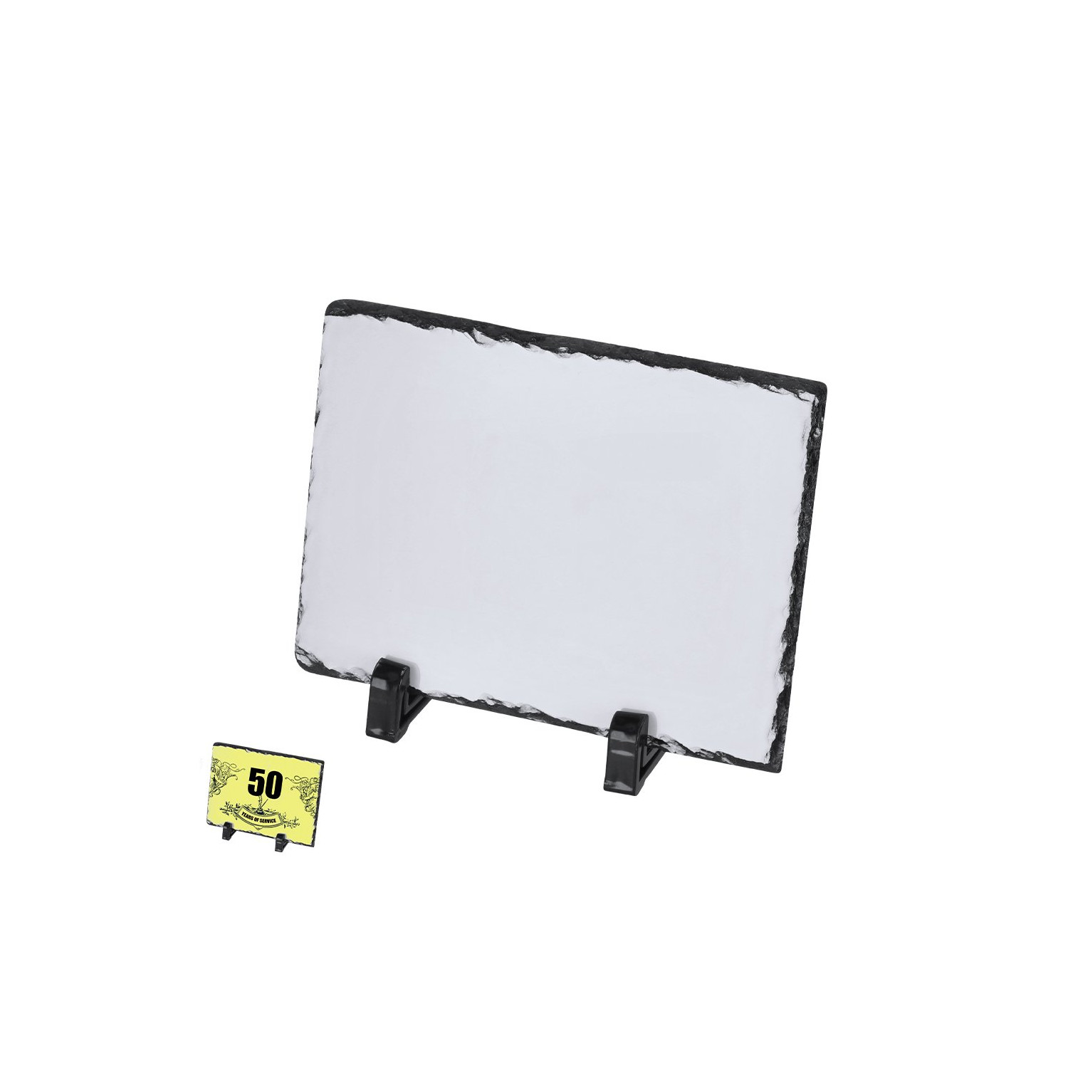 Ardesia, ideale per la sublimazione. Include supporti per esposizioni in ABS resistente. Ideale per regali personalizzati, riconoscimenti, premi e decorazioni.