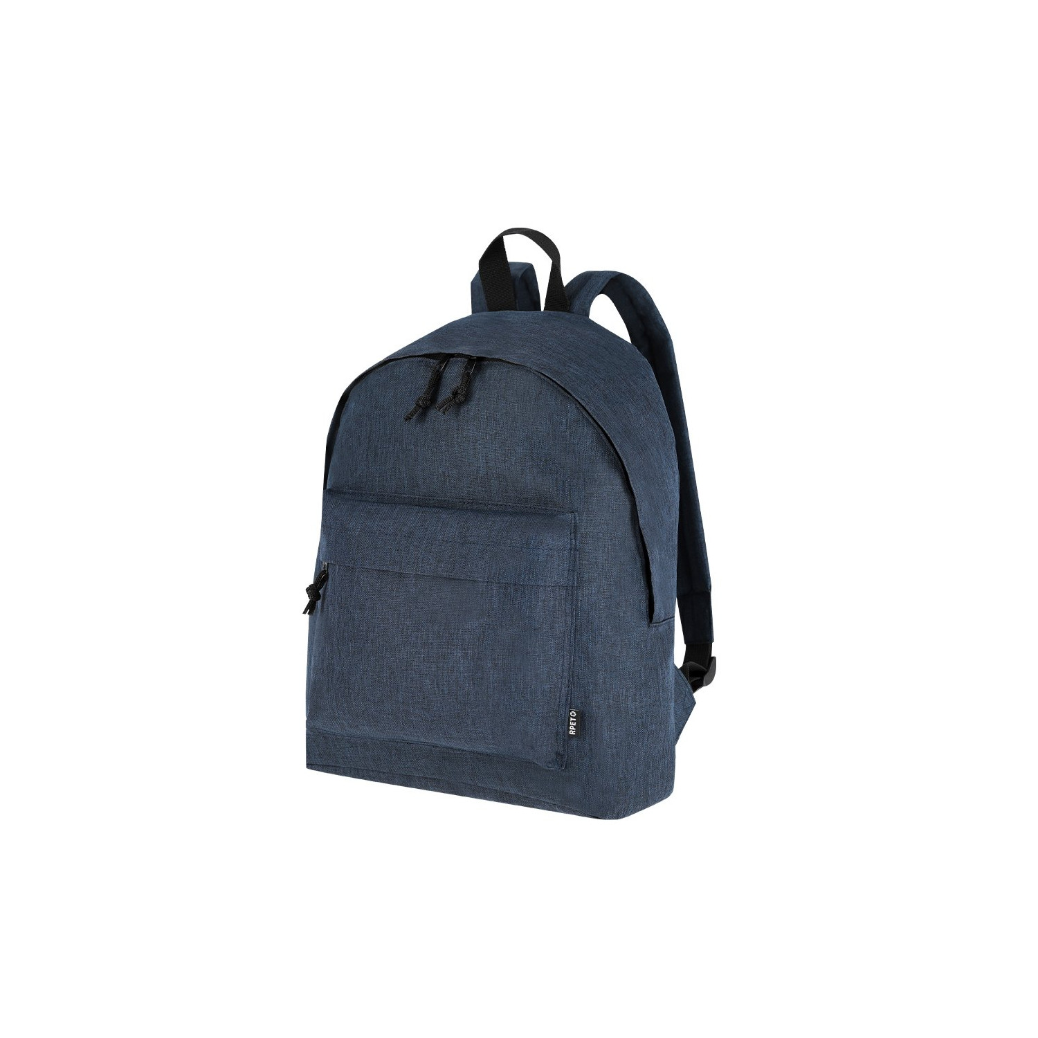 Zaino realizzato in morbido poliestere RPET 600D con design mélange. Dotato di uno scomparto principale con chiusura a zip e doppio tiretto metallico nero con cordino per una presa più agevole. Include una tasca frontale con chiusura a zip. Schienale e spallacci regolabili imbottiti per garantire il massimo comfort. Rifinito con etichetta distintiva RPET.