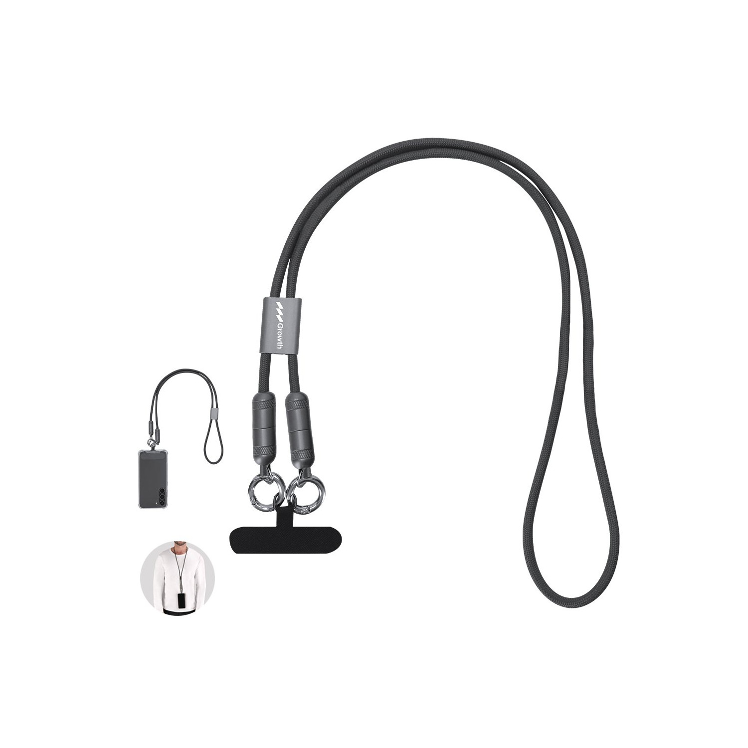Bracciale cavo di ricarica, funzione di trasferimento dati e supporto per smartphone. Con ingresso/uscita Tipo C e potenza di 60W, che consente la ricarica rapida. Funzionalità e comodità in un unico accessorio.