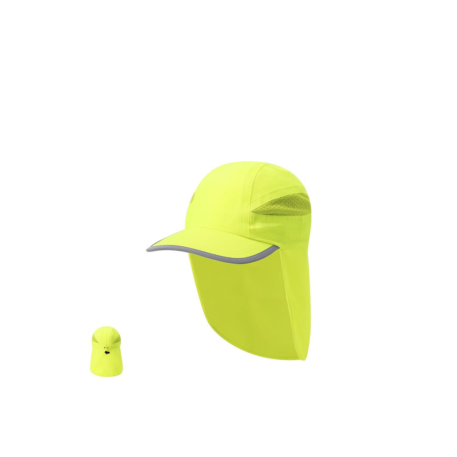 Cappellino in poliestere di colore fluorescente, ideale per maggiore visibilità. Include profilo riflettente sulla visiera. Con chiusura elastica con accessorio regolabile per una vestibilità comoda e personalizzata. Ha pannelli in rete traspirante che favoriscono la ventilazione durante l'uso. La sua pratica tesa posteriore offre protezione aggiuntiva, riparando il collo dai raggi solari.