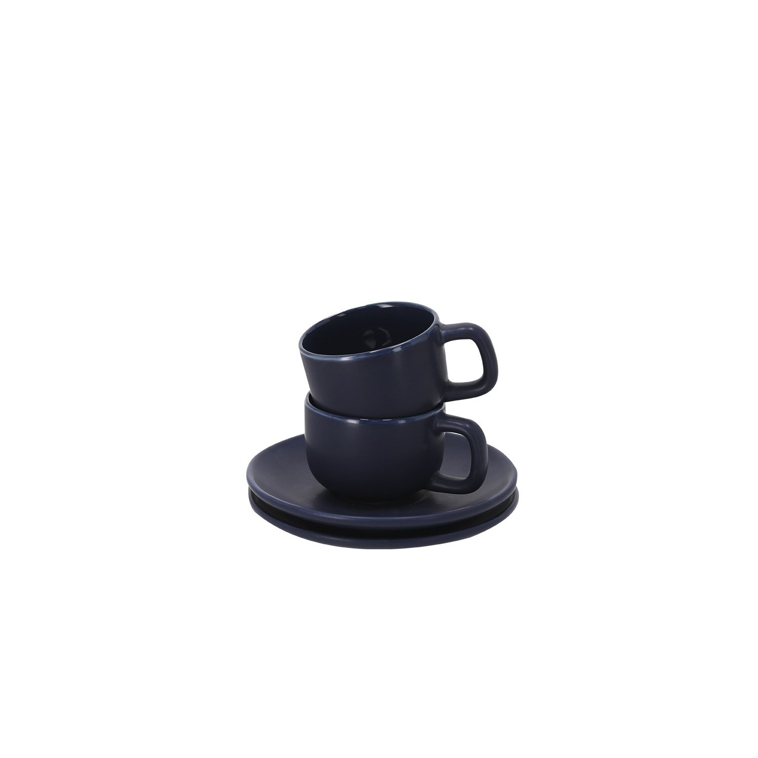 Set di tazze con una capacità di 85ml in ceramica. Ognuno include una piastra dello stesso colore con finitura opaca. Ideale per condividere momenti con la tua bevanda preferita.