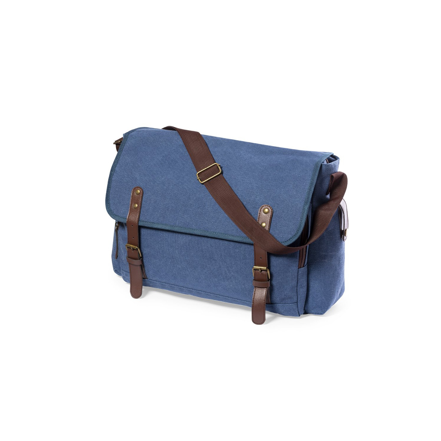 Borsa a tracolla dal design intramontabile, realizzata in resistente tela da 480 g/m2, con cinte di chiusura in similpelle e pratica tracolla regolabile. Interno imbottito con scomparti separati per tablet fino a 10 e laptop fino a 15. Include pratiche tasche laterali esterne.