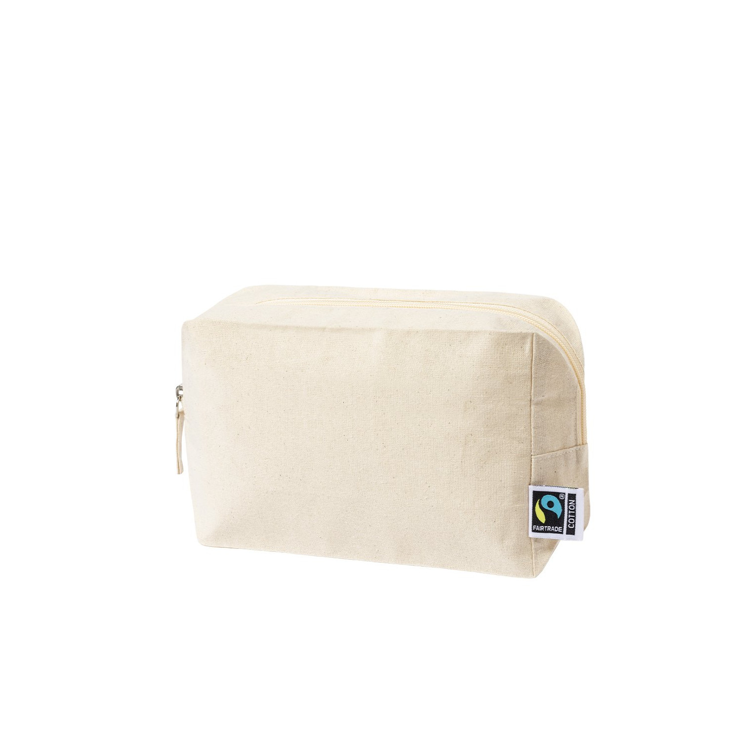 Beauty case della linea Natura, realizzata in cotone 180g/m2 in tono naturale. Certificato Fairtrade (commercio equo e solidale), un sistema alternativo al commercio convenzionale che persegue lo sviluppo dei popoli e la lotta contro la povertà. Scomparto principale con chiusura a zip e tiretto abbinato, con etichetta Fairtrade e distintivo cartellino in cartone riciclato.