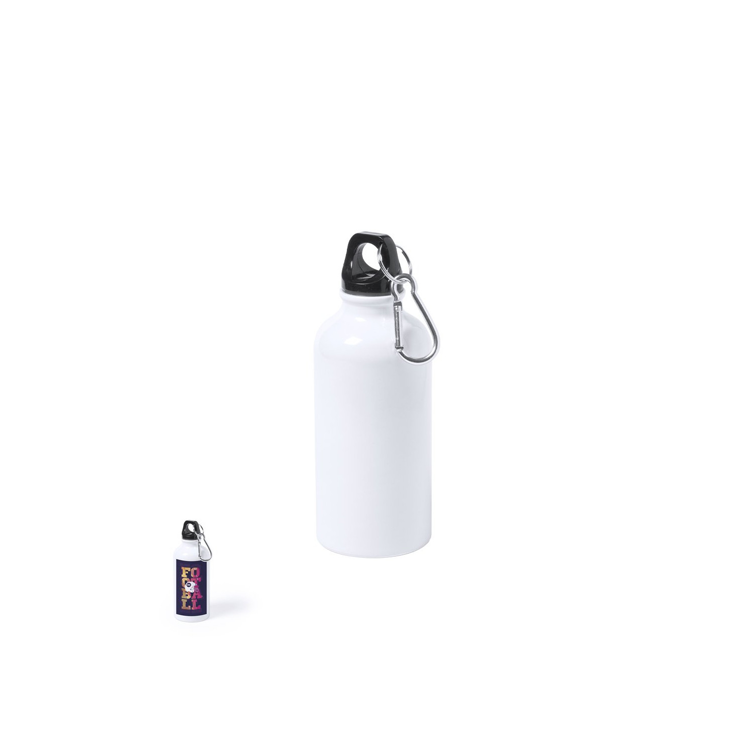 Borraccia da 400 ml con corpo bianco liscio e lucido, appositamente progettata per la stampa in sublimazione. Con tappo di sicurezza a vite e moschettone in metallo per il trasporto. Confezionata singolarmente.Manuale di istruzioni disponibile in spagnolo e inglese.