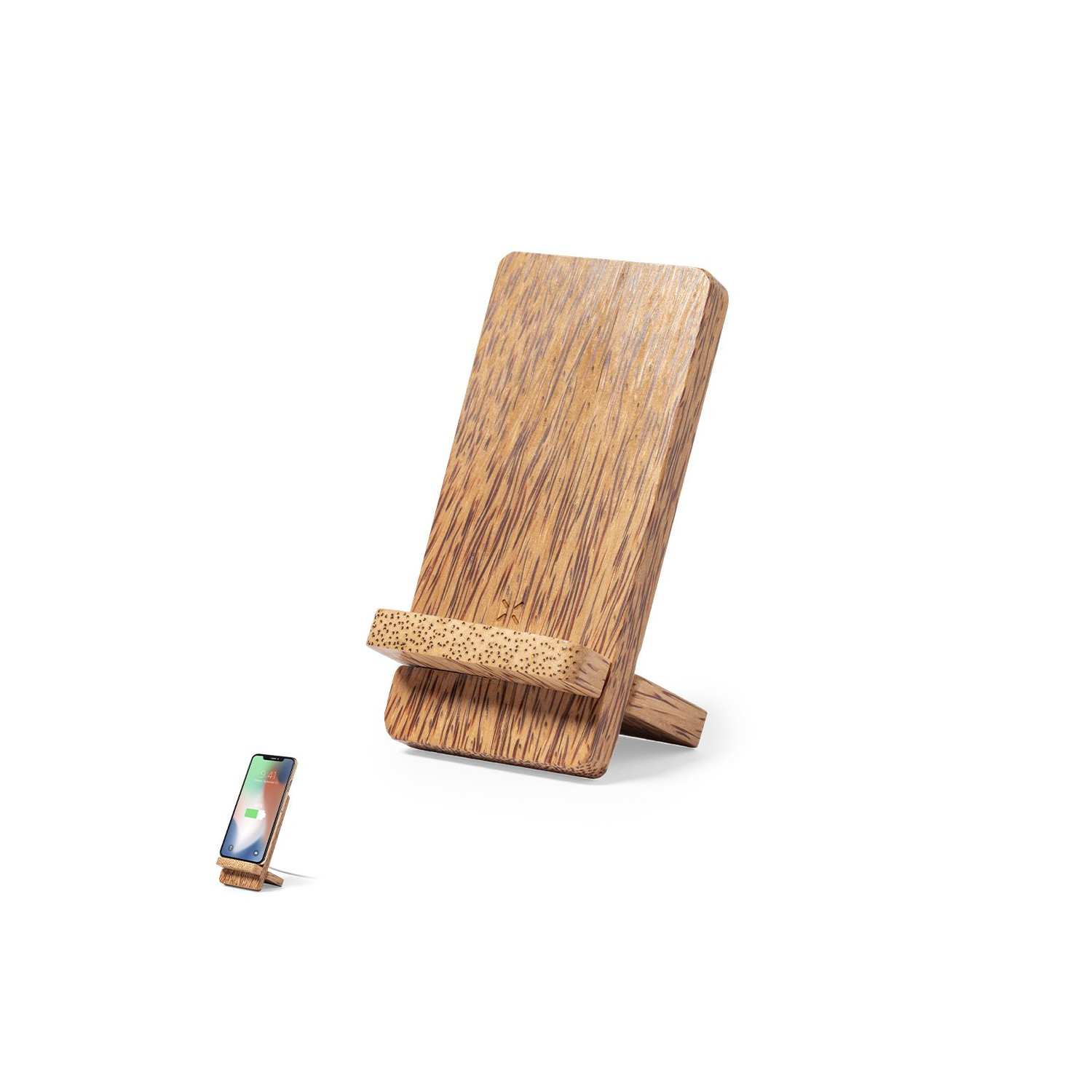 Caricatore wireless 15W della linea natura con funzione di supporto per smartphone e prodotto in noce di cocco. Dopo il consumo del suo frutto, la noce di cocco e la sua pianta possono essere utilizzate per ottenere una moltitudine di prodotti, contribuendo alla sostenibilità del pianeta e promuovendo luso di materie prime naturali. Compatibile con i dispositivi dotati di tecnologia di ricarica wireless. Ampia area di branding e confezione individuale in cartone kraft dal design ecologico.