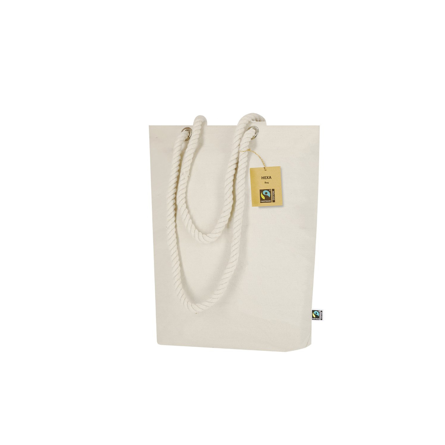 Borsa della lineanatura, realizzata in cotone da 280g/mq in colore naturale. Con la certificazione Fairtrade, un sistema commerciale solidale e alternativo a quello convenzionale che persegue lo sviluppo delle persone e la lotta alla povertà. Con finitura cucita, manici a corda e anelli per una maggiore rinforzo. Resistenza fino a 10kg di peso. Inclusa etichetta Fairtrade e etichetta con logo su cartone riciclato.