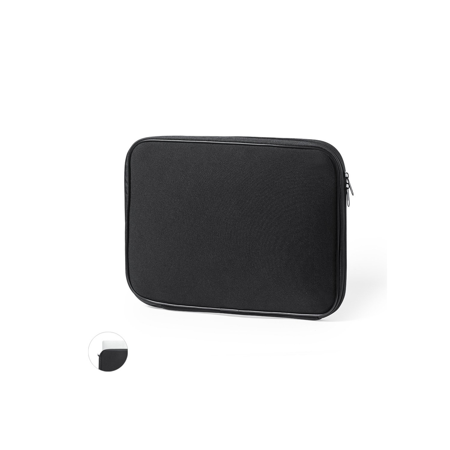 Custodia per laptop, realizzata in resistente soft shell. In un elegante colore nero con interno imbottito. Chiusura a zip con doppio tirante. Adatto a laptop o tablet fino a 15".