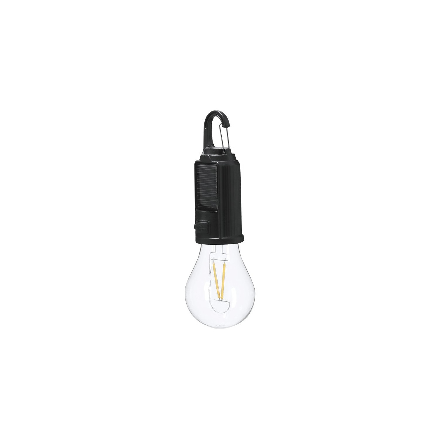 Lampada con design originale della lampadina e corpo in ABS. Batteria da 300 mAh e ricarica solare. Ha un sensore notturno che si attiva automaticamente quando non riceve la luce solare. Dispone di carica tramite cavo di tipo C, oltre a includere un moschettone per un facile trasporto.