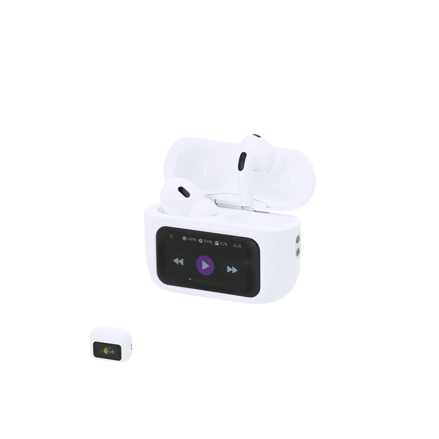 Auricolari intraaurali con schermo tattile dotati di tecnologia ANC (Active Noise Cancellation) e ENC (Electronic Noise Cancellation), che riducono significativamente i rumori esterni per offrire un'esperienza sonora immersiva e di alta qualità.Incorporano schermo tattile a colori con molteplici funzioni:- Controllo degli auricolari.- Funzione mani libere per le chiamate.- Opzione per saltare canzoni.- Allarme.- Supporto per più lingue.- Sfondo personalizzabile.- Visualizzazione della data.- Controllo remoto per la funzione di scatto fotografico.- Accesso diretto agli assistenti vocali.Con connessione Bluetooth 5.2 e ricaricabili tramite USB di tipo C -cavo incluso-.Fabbricati secondo gli standard RoHS e in conformità con i seguenti requisiti di sicurezza:Il sistema di protezione contro il surriscaldamento.Il sistema di protezione contro il sovraccarico.Il sistema di bloccaggio per evitare cortocircuiti.Connessione Bluetooth. Batteria 30 mAh/ Base di Ricarica 300 mAh