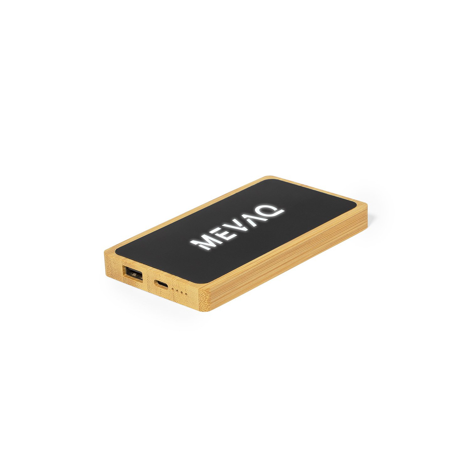 Power bank esterno da 5.000 mAh realizzato in bambù con un'elegante superficie nera, luce LED all'interno e un rivestimento esterno appositamente progettato per la stampa laser, illuminando così il logo. 1 uscite USB e 1 Type-C. Ingresso di tipo C. Con indicatori di stato di carica a LED. Include cavo di ricarica di tipo C e manuale di istruzioni in inglese e spagnolo. Presentato in una scatola individuale dal design kraft.Ingresso/uscita USB C: 5V DC 2,4VUscita USB: 5V DC 2,4ALe capacità indicate su tutte le nostre batterie ausiliarie esterne sono reali e comprendono tutte batterie di grado A e non riciclate, con una durata di almeno 500 cicli di carica e conformi alle normative CE.Inoltre, sono prodotte secondo gli standard RoHS e in conformità ai seguenti requisiti di sicurezza:Sistema di protezione da sovraccarico del power bank.Sistema di protezione dalla scarica completa per una maggiore durata del power bank.Sistema di blocco per prevenire i cortocircuiti.Sistema di trasferimento costante della carica, in base alla capacità del dispositivo di destinazione.