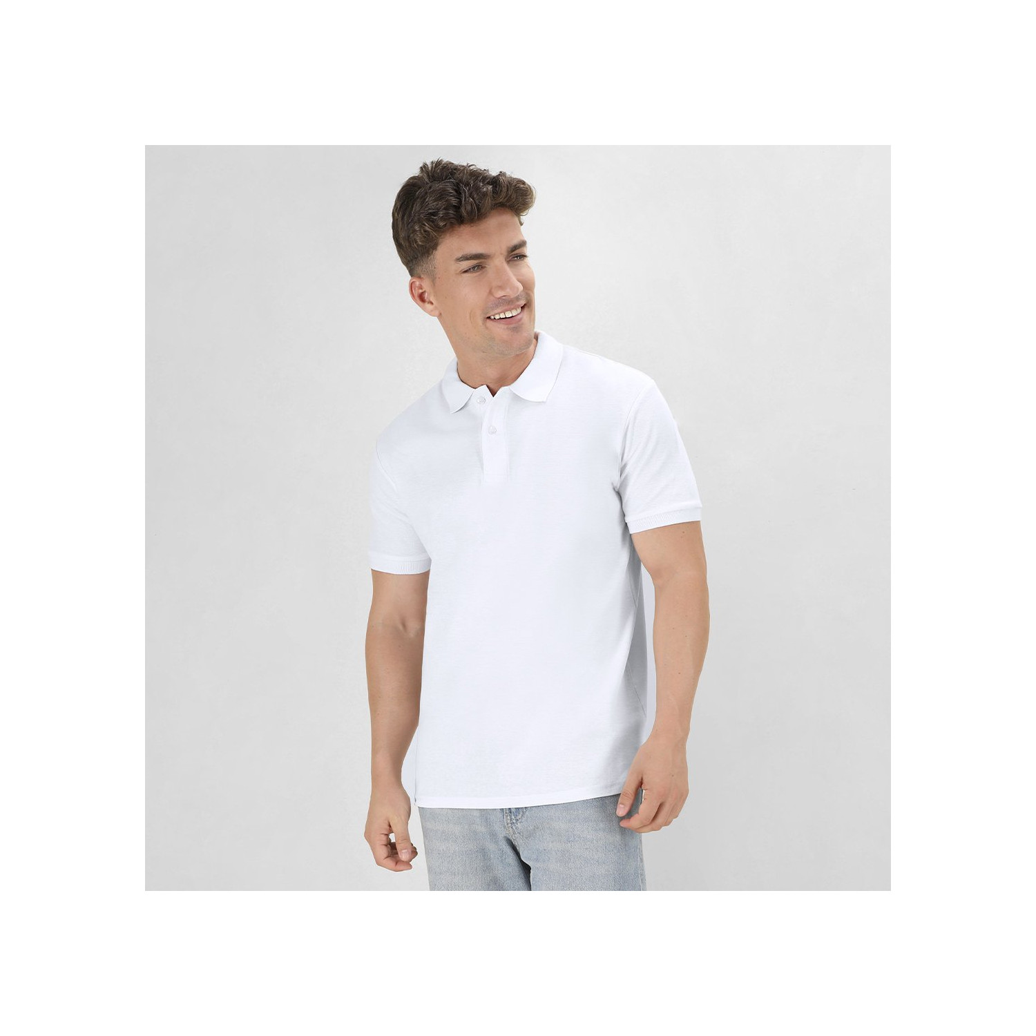 Polo in piqué taglia adulto in bianco. In materiale 100% cotone da 220 g/m2. Presenta due chiusure con bottoni in tinta e spacchetti laterali al fondo. Etichetta facilmente rimovibile. Taglie S, M, L, XL, XXL, 3XL.