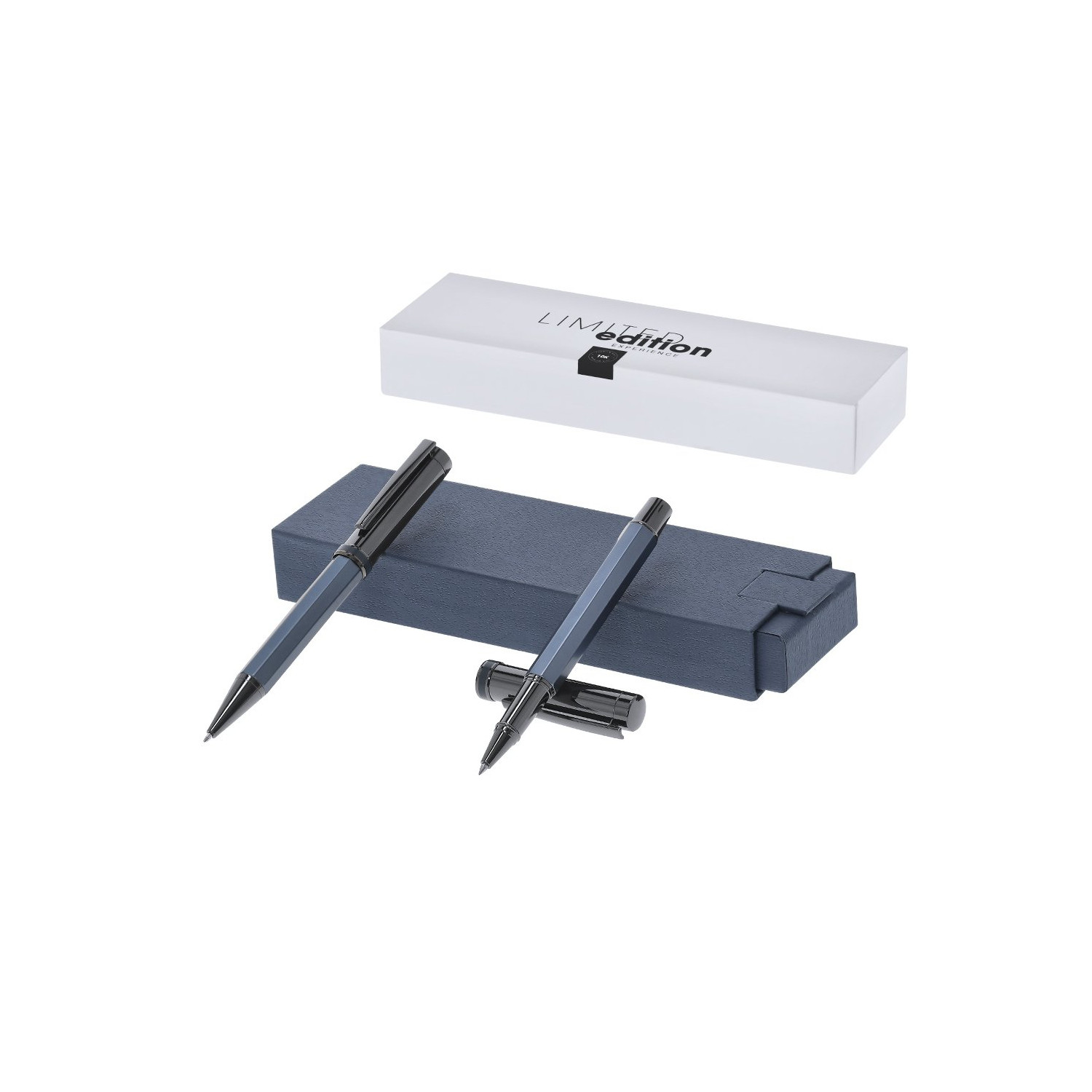Set esclusivo di penna a sfera e penna roller di altissima qualità della collezione Limited Edition. Un accessorio moderno, funzionale e splendido che trascende tutte le aspettative. Distinto per il suo design elegante e minimalista. Realizzato in acciaio inossidabile resistente e durevole, in perfetta combinazione con l'alluminio. Penna a sfera con sofisticato sistema di apertura a rotazione e penna roller con pratico cappuccio. Design a presa esagonale in colori metallici opachi e una parte superiore lucida in antracite sobria. Con clip in metallo, inchiostro blu e ricaricabile (penna roller con cartuccia jumbo).Dalla perfetta combinazione di esclusività e design, nasce Limited Edition, una collezione speciale di idee promozionali in edizione limitata. Un nuovo concetto, ispirato dalla fusione di prodotti premium con le tendenze più recenti e innovative e con una selezione limitata disponibile, trasformando un regalo in un'esperienza unica e indimenticabile.Esclusivo astuccio di presentazione Limited Edition, con un design protetto da diritti di proprietà industriale.Inclusa una scheda con la descrizione della Limited Edition in cartone riciclato.
