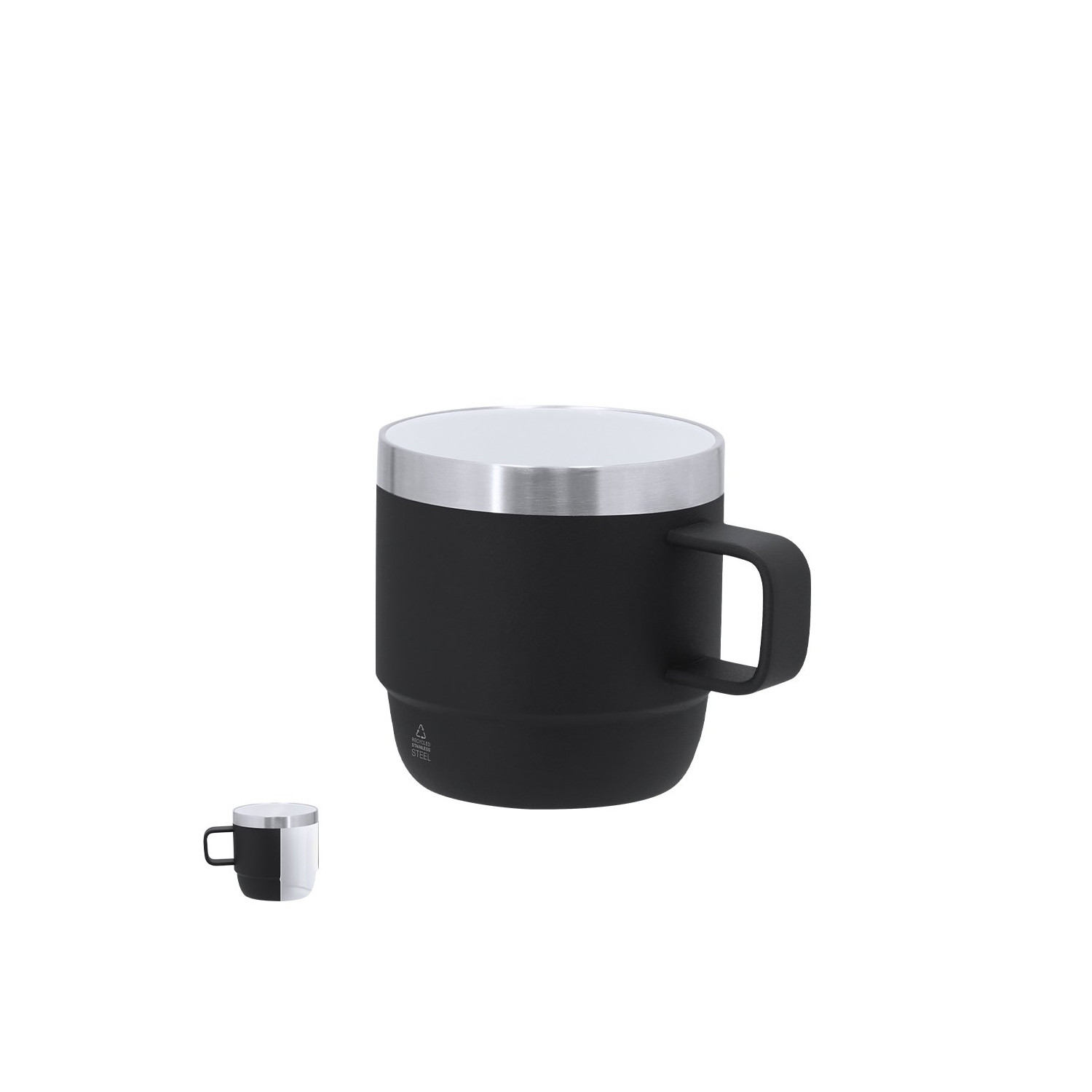 Tazza realizzata in Acciaio Inox Riciclato a doppia parete e capacità di 180ml. Con doppia parete per una migliore e più duratura conservazione della temperatura e interno con rivestimento in ceramica, adatta per bevande gassate. Con distintivo di Acciaio Inox Riciclato.L'acciaio è uno dei materiali più richiesti e può essere trovato quasi ovunque, da prodotti di uso quotidiano a grandi costruzioni. Con innumerevoli proprietà, tra cui la durabilità e il suo alto grado di riutilizzo, rendendolo un'alternativa molto valorizzata nelle soluzioni di sostenibilità. Adeguatamente trattato, consente di ottenere nuove risorse di utilizzo infinito.