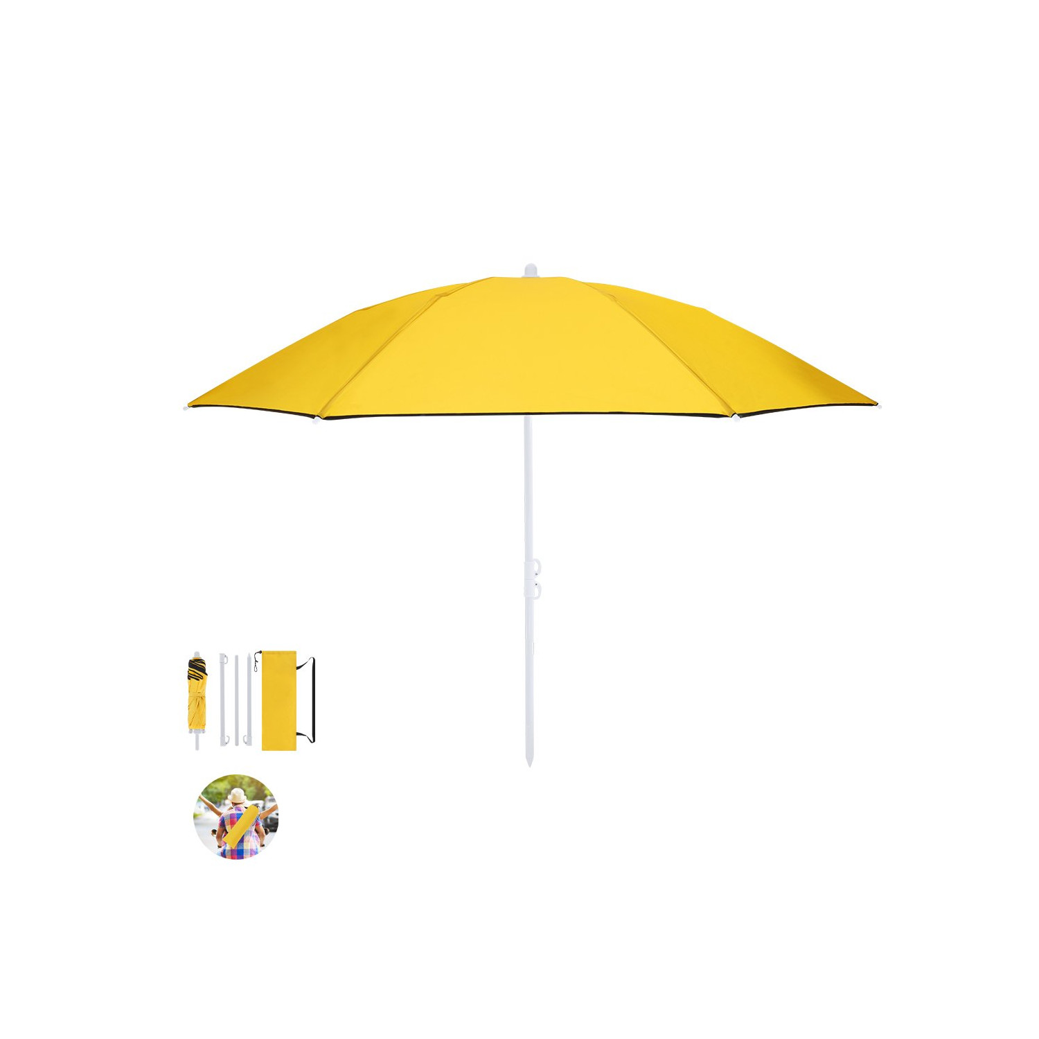 Ombrellone da spiaggia pieghevole a 8 pannelli, il suo design compatto in quattro sezioni facilita il montaggio. Realizzato in nylon resistente con interno di colore grigio argento e protezione UV, con un diametro di 160 cm, altezza regolabile e tubi metalizzati di colore bianco. Le stecche sono fabbricate in fibra di vetro per maggiore resistenza e resistente al vento. Viene presentato in una pratica custodia trasparente abbinata all'ombrello, con chiusura a corda e nastro per il trasporto.