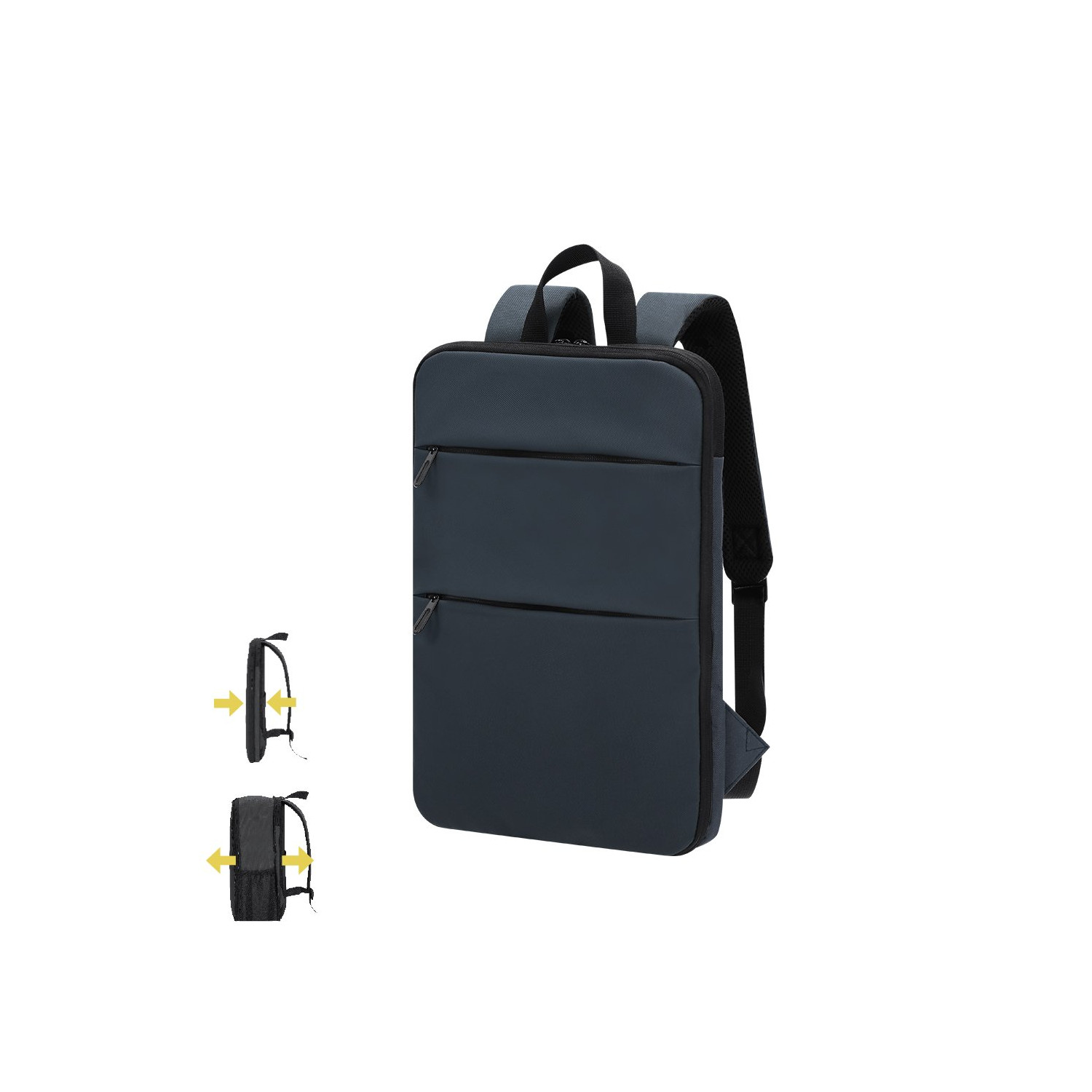 Zaino estensibile realizzato in PU/poliestere 600D resistente. Dotato di una chiusura a doppia cerniera, con la possibilità di aumentare la capacità. Con due compartimenti anteriori e uno scompartimento interno imbottito per laptop fino a 15 pollici. Tasca laterale. Trapalline imbottite comode, traspiranti e regolabili. Include nastro adesivo per fissarlo su carrello e valigie.