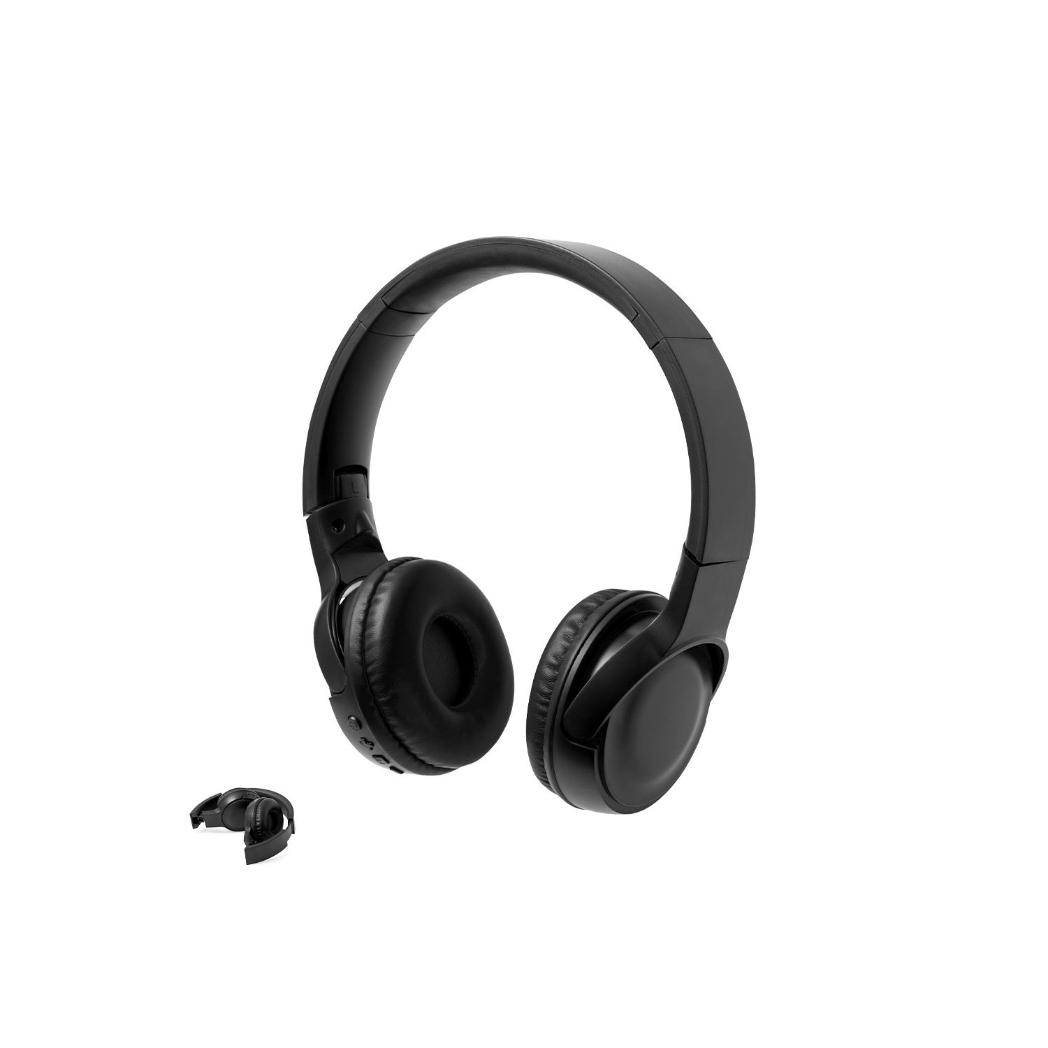 Cuffie ad archetto pieghevoli con connessione Bluetooth® 5.0, con corpo e cuscinetti coordinati, disponibili in un'ampia gamma di colori. Pannello di controllo integrato nelle cuffie, funzione vivavoce e radio FM con slot per schede micro SD e ingresso di linea tramite connessione jack da 3,5 mm. Ricaricabile tramite cavo USB -incluso- e con batteria integrata da 200 mAh. Morbidi cuscinetti in similpelle con interno coordinato e confezionate singolarmente in una scatola kraft.