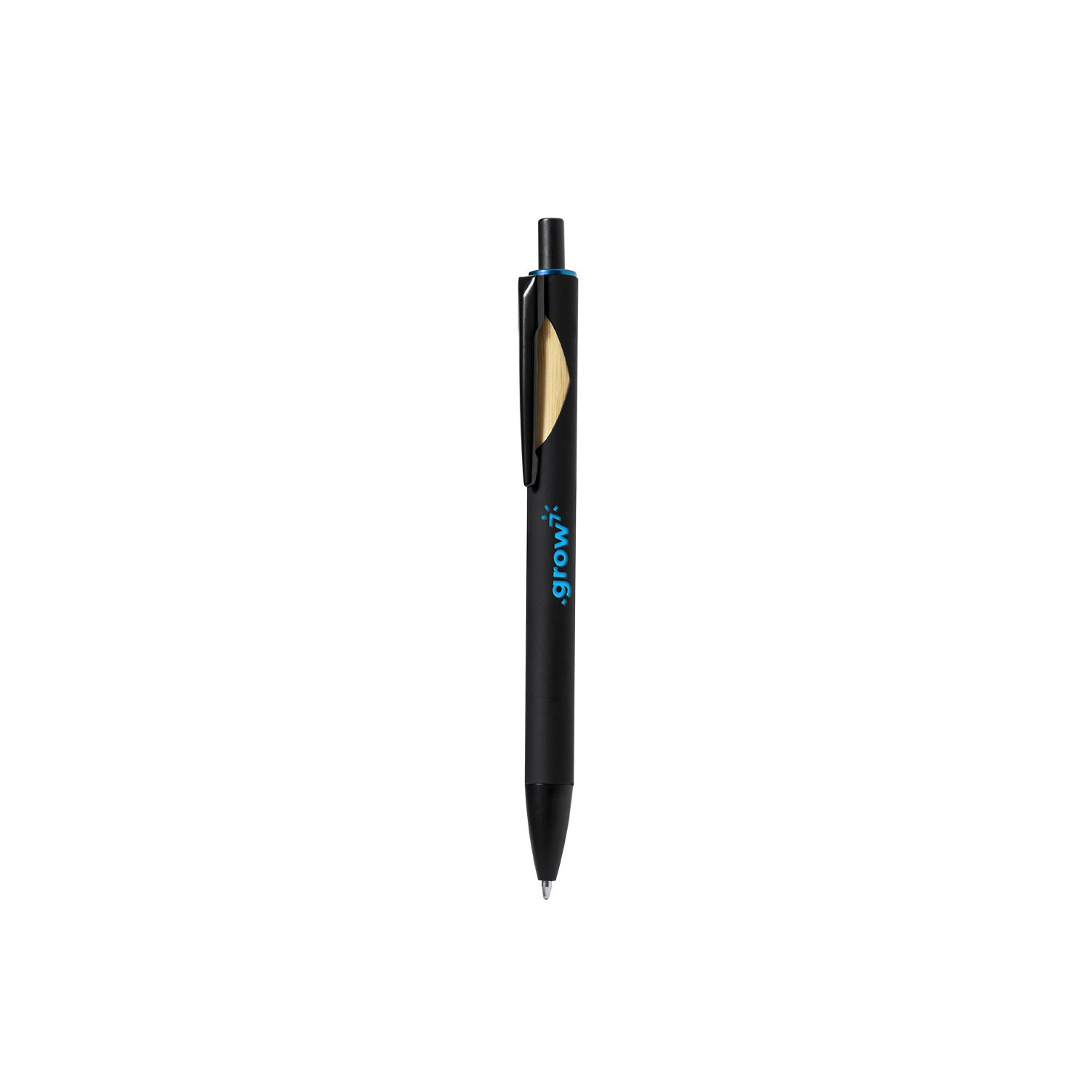 Penna con meccanismo a pulsante con fusto in finitura nera solida e dettagli della parte superiore in vari colori. Clip in metallo nero con dettaglio in bambù. Appositamente progettata per la stampa laser e dotata di uno speciale rivestimento esterno che consente di incidere in modo perfettamente coordinato la vostra pubblicità. In inchiostro blu. Presentato in un sacchetto individuale riciclato.Materiali come il bambù favoriscono l'utilizzo di materie prime naturali, riducendo le emissioni inquinanti. Proviene da una pianta altamente resistente e versatile, con una rapida crescita e rigenerazione, che lo rende un'ottima alternativa all'uso del legno tradizionale.