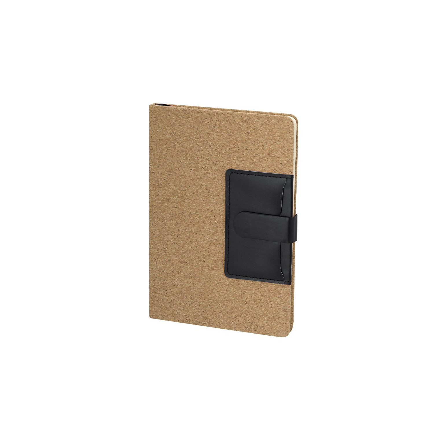 Blocco note a copertina rigida in combinazione di sughero naturale e PU. Include tasca in PU sulla copertina, ideale per carte. Con chiusura magnetica, 80 pagine di disposizione a righe e segnalibro coordinato.Realizzato con elementi vegetali per promuovere l'uso di materie prime naturali e ridurre le emissioni inquinanti.