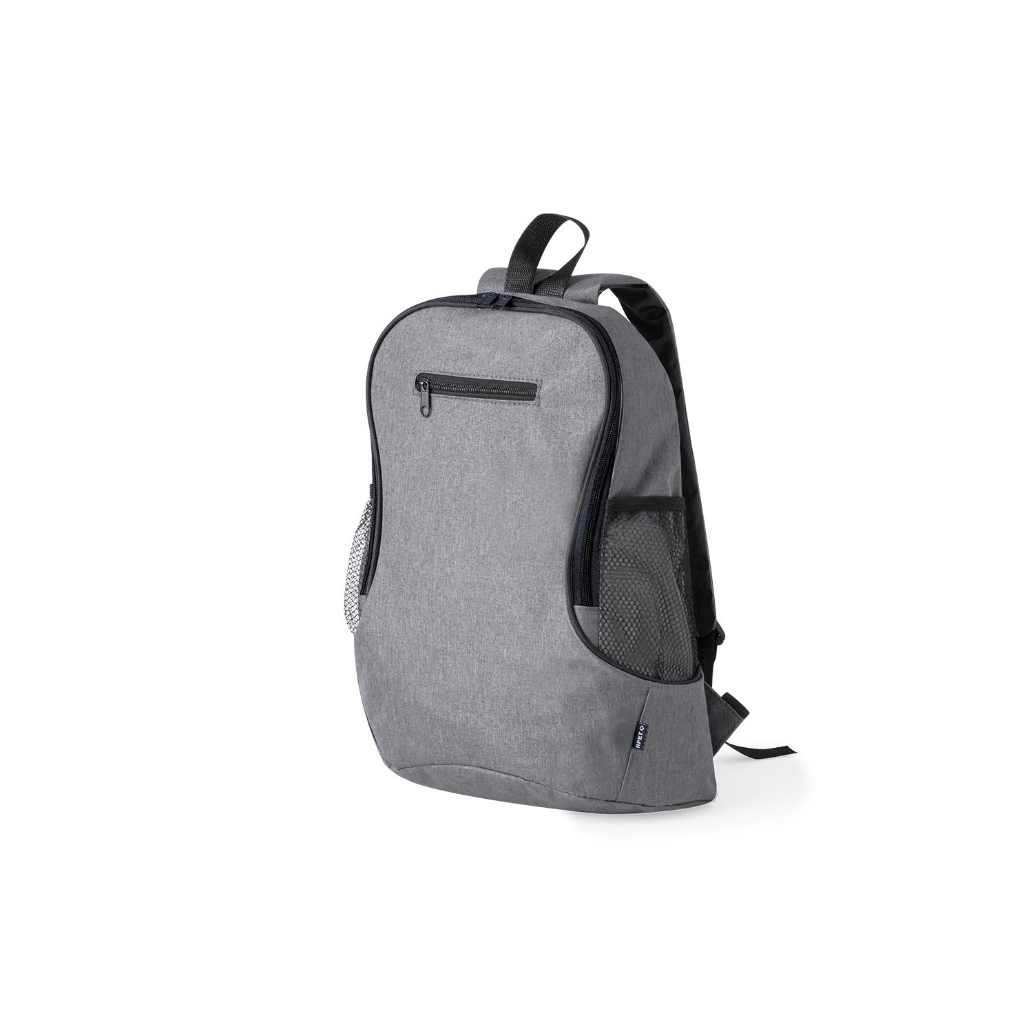 Zaino in resistente 300D RPET. Tasca principale e tasca frontale con chiusura a zip. Spallacci imbottiti regolabili e tasche laterali in rete. Marchio RPET sul lato esterno. Disponibile in una gamma di colori con accessori neri e confezionato singolarmente in un sacchetto riciclato. Il materiale RPET è realizzato con plastica riciclata per incoraggiare il riutilizzo dei rifiuti plastici e contribuire alla sostenibilità del pianeta