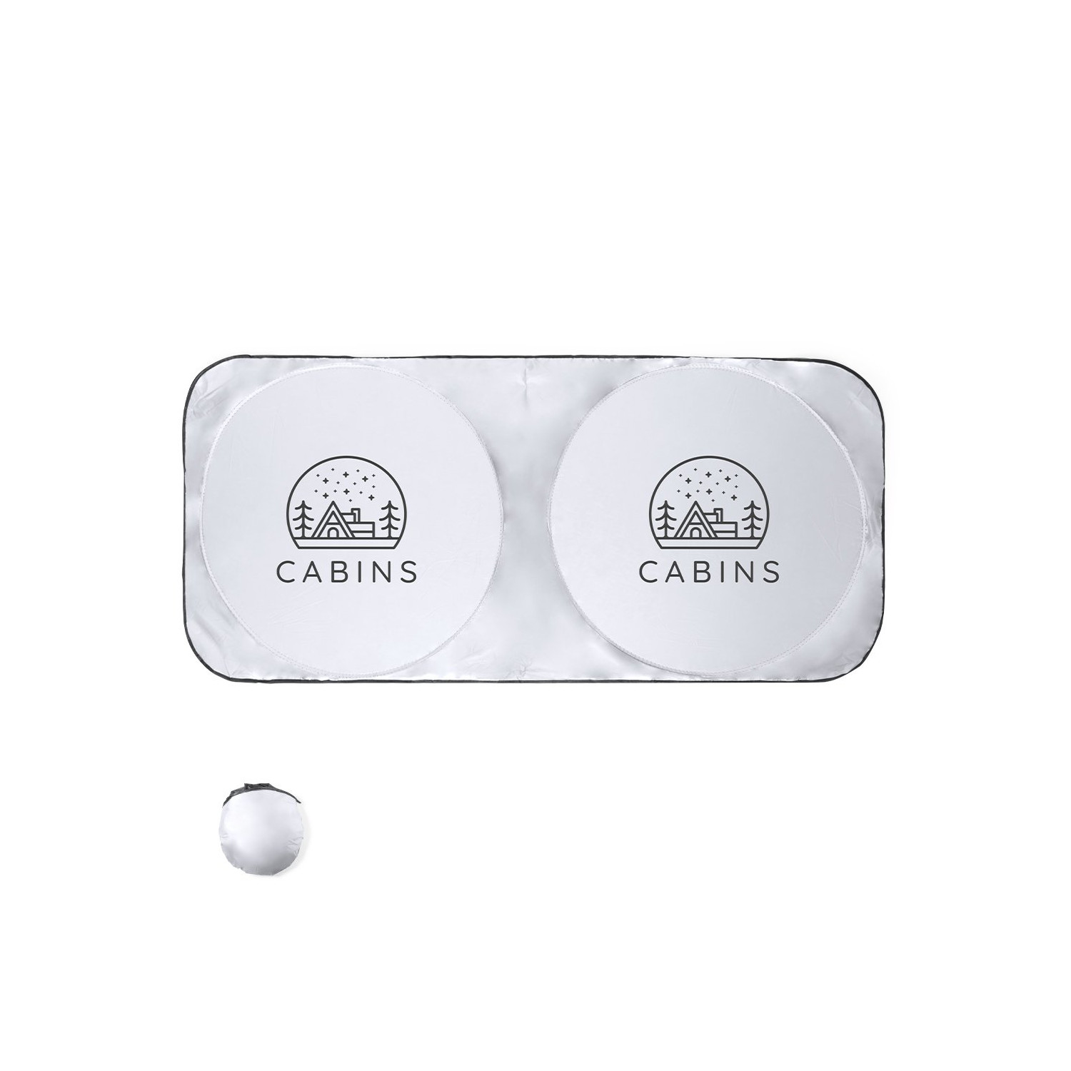 Originale parasole pieghevole in robusto poliestere argentato. Leggero, 150 x 70 cm, adatto per auto e furgoni. Bordi rinforzati, con sistema di piegatura facile e custodia singola abbinata. Inviato steso per facilitare la stampa, con custodia a parte.