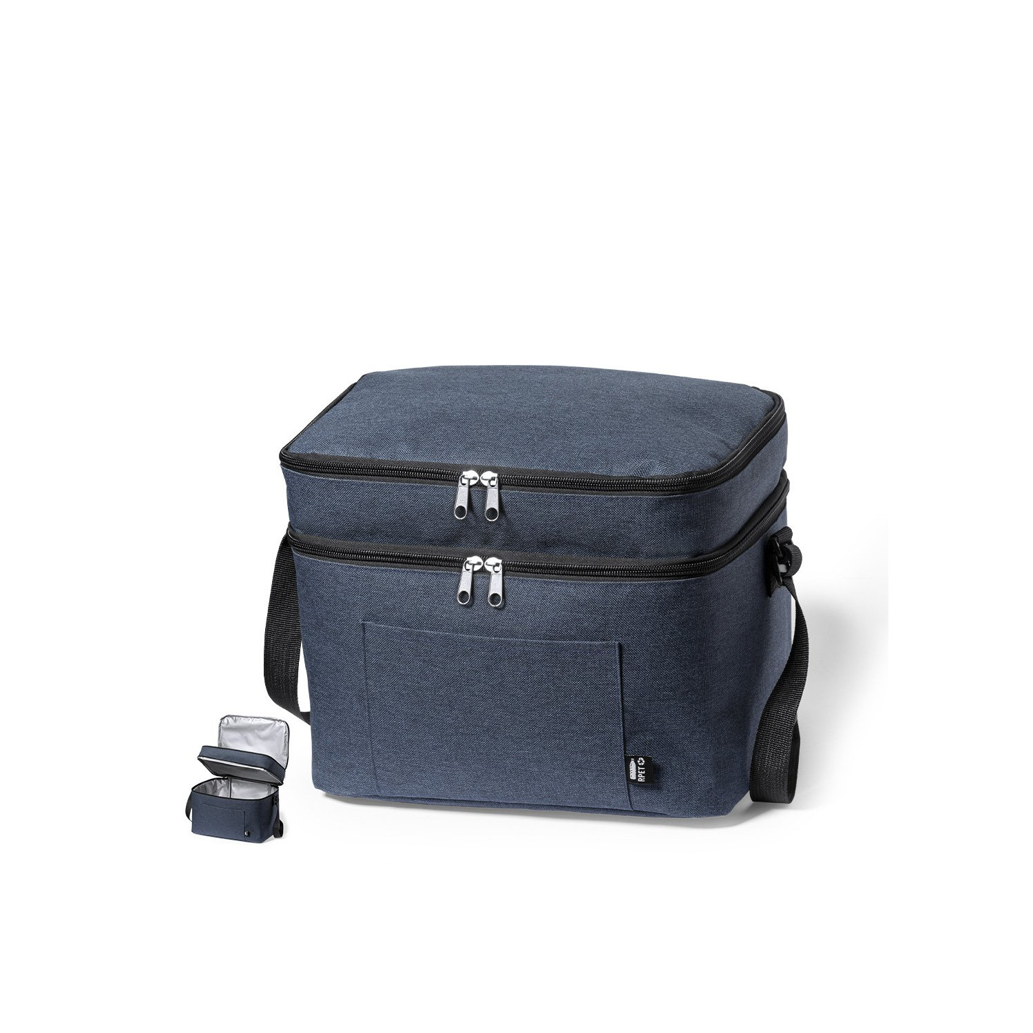 Borsa termica realizzata in resistente RPET 600D. Include 2 scomparti indipendenti, con chiusura a zip e doppio tirante in metallo. Interno isotermico in PEVA, con tracolla regolabile e tasca esterna. Disponibile in un'ampia gamma di colori, con etichetta RPET all'esterno. Il materiale RPET è realizzato con plastica riciclata, promuovendo così il riutilizzo dei rifiuti plastici e contribuendo alla sostenibilità del pianeta.