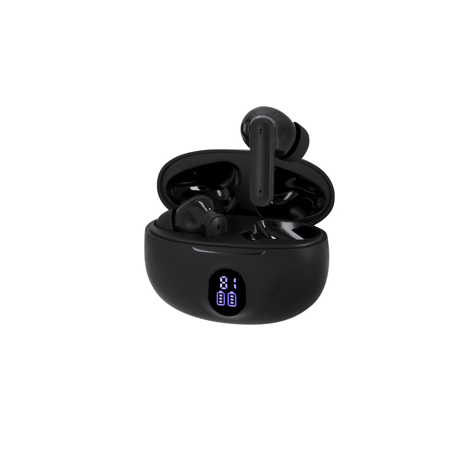 Auricolari intraaurali con connessione Bluetooth® 5.4, con funzione mani libere e cancellazione dei rumori. Di design ergonomico, includono pulsante di controllo touchscreen integrato nell'auricolare, con base di ricarica coordinata e schermo esterno dello stato della batteria per auricolare. Batteria integrata da 230 mAh. Manuale di istruzioni in spagnolo e inglese.