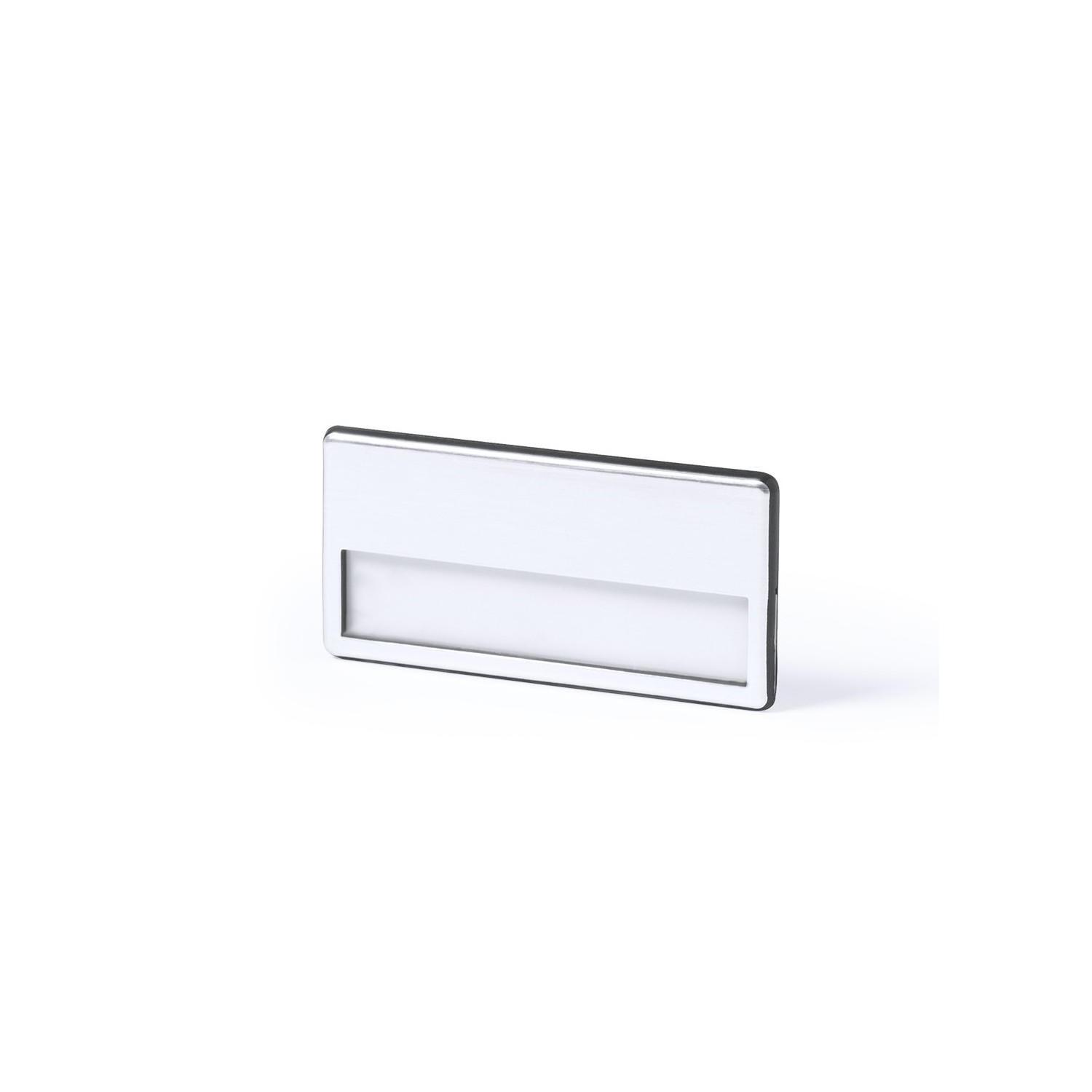Badge portanome con finitura lucida. Dorso con doppio sistema di chiusura - clip metallica e spilla di sicurezza - per una vestibilità sicura.