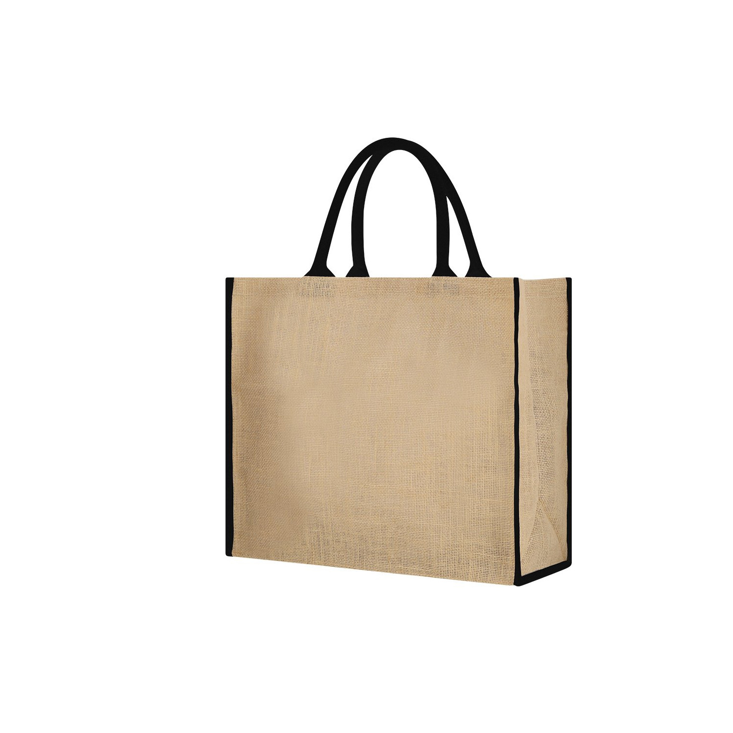 Sacco realizzato principalmente con juta da 300 g/m2. Con un design pratico e moderno, incorpora manici corti rinforzati. Gusset alla base e ai lati. Include chiusura di sicurezza con velcro.