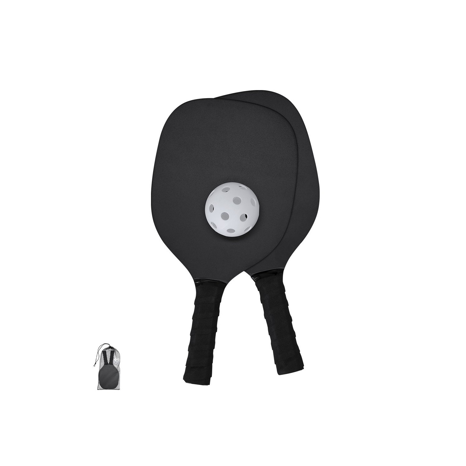Una coppia di palette Pickle Ball realizzate in legno MDF con finitura opaca con palla. Manico rivestito di EVA morbida in colore nero per una migliore presa. Include una borsa a rete RPET per lo stoccaggio e facile da trasportare.