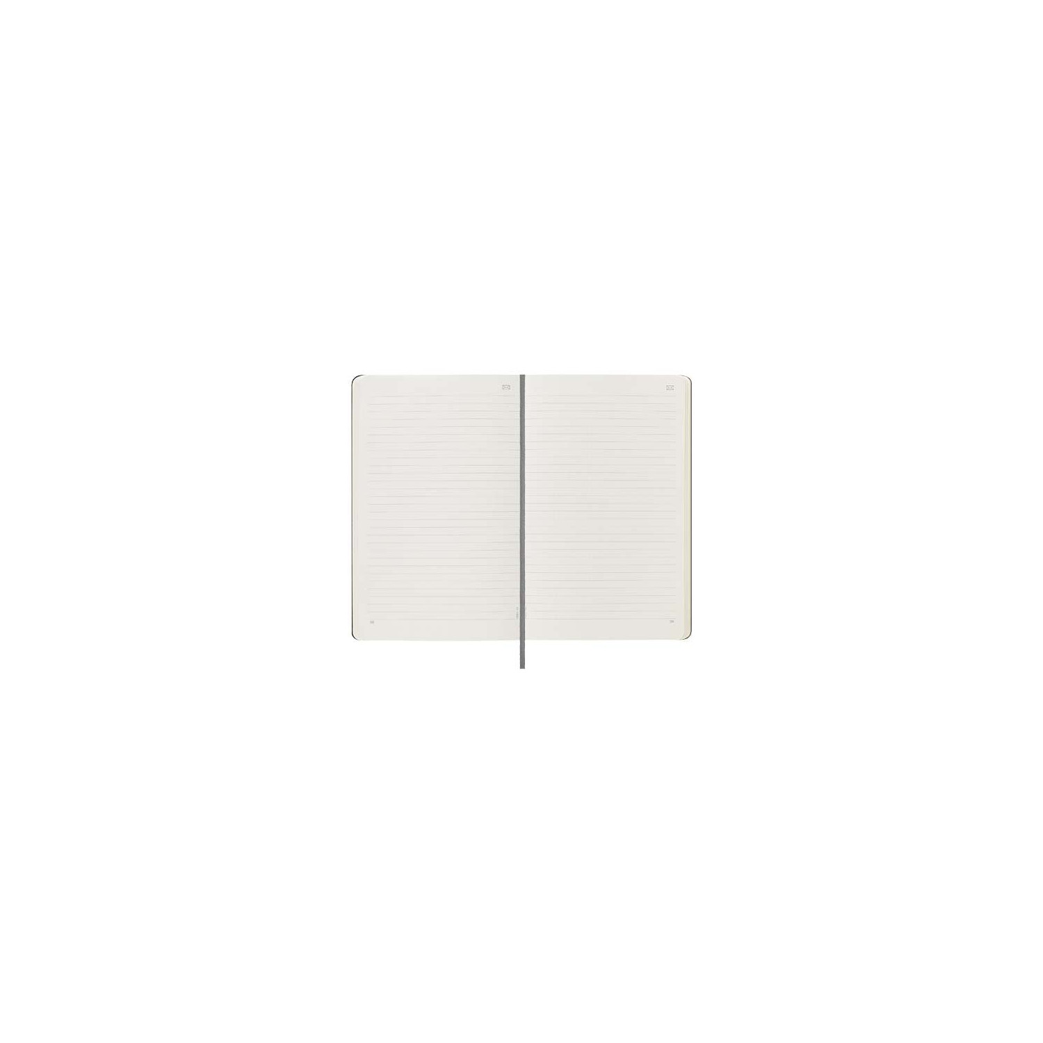 - Presenta una chiusura elastica, un righello da 100 g/m² color avorio e privo di acidi, una carta speciale progettata per funzionare con la Smart Pen Moleskine, un avviso “In caso di smarrimento” stampato sul risguardo e una tasca interna espandibile sul retro