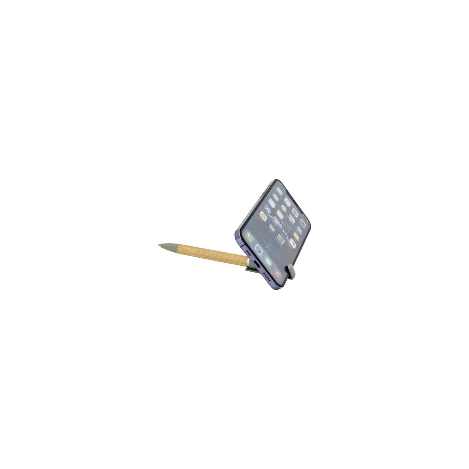 - Penna a sfera in bambù che funge anche da supporto per smartphone