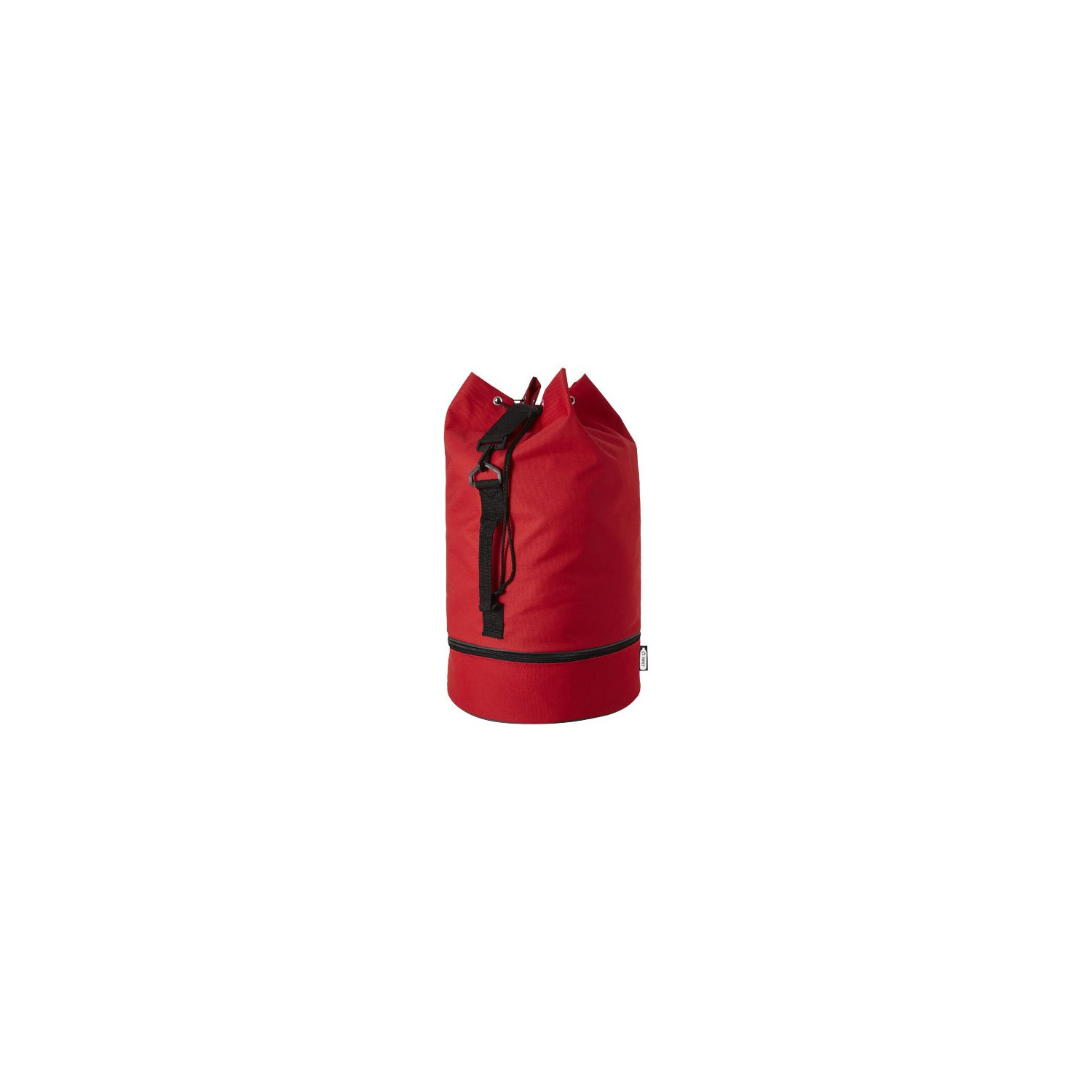 - Sacca impermeabile realizzata in plastica PET riciclata con uno spazioso scomparto principale da 20 litri, chiusura a cordoncino, maniglia laterale e tracolla regolabile