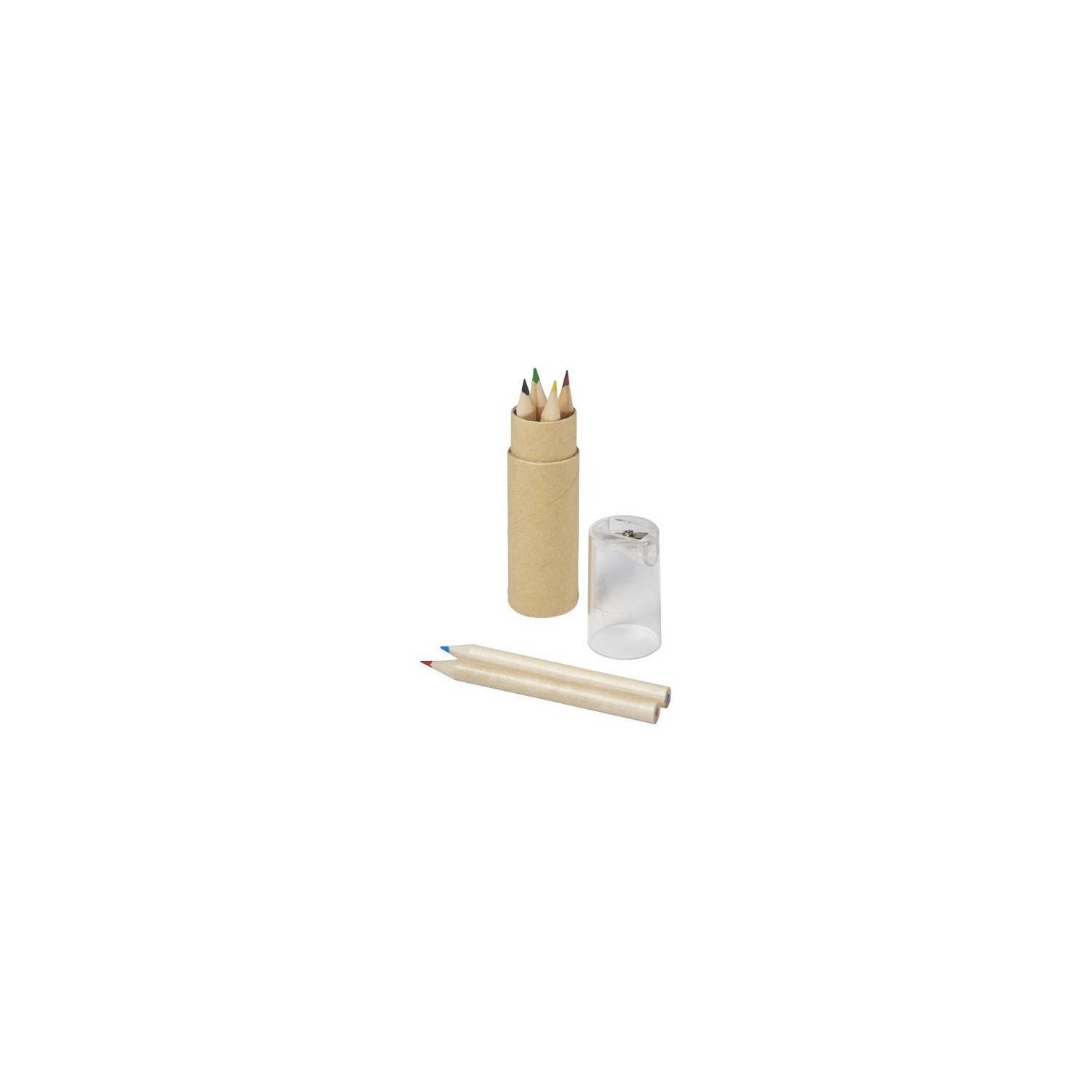- 6 matite colorate in confezione cilindrica in cartoncino con temperamatite nel coperchio di plastica