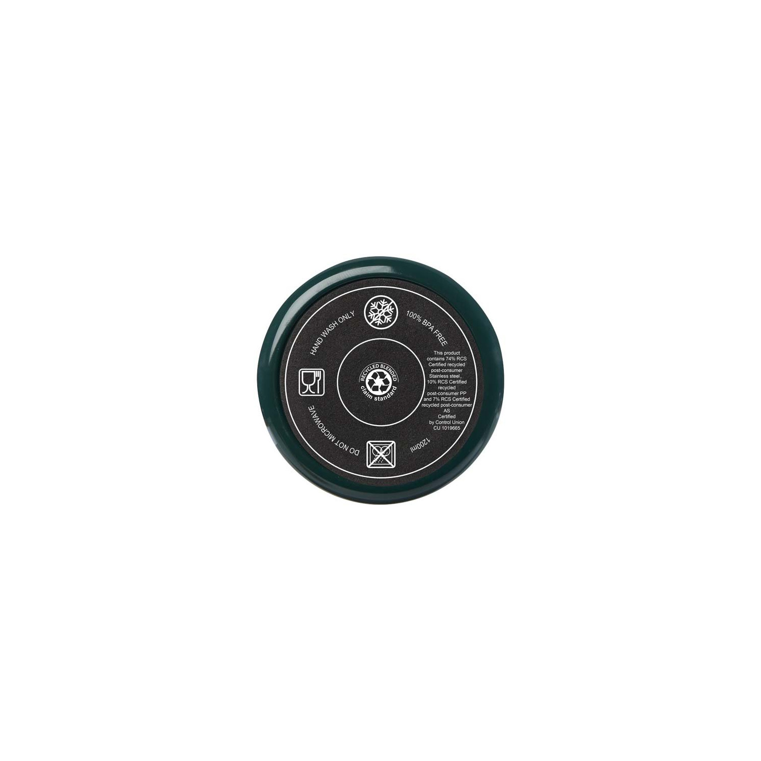 • La parete interna della tazza è composta da plastica riciclata e la parete esterna è realizzata in acciaio inossidabile riciclato certificato RCS
